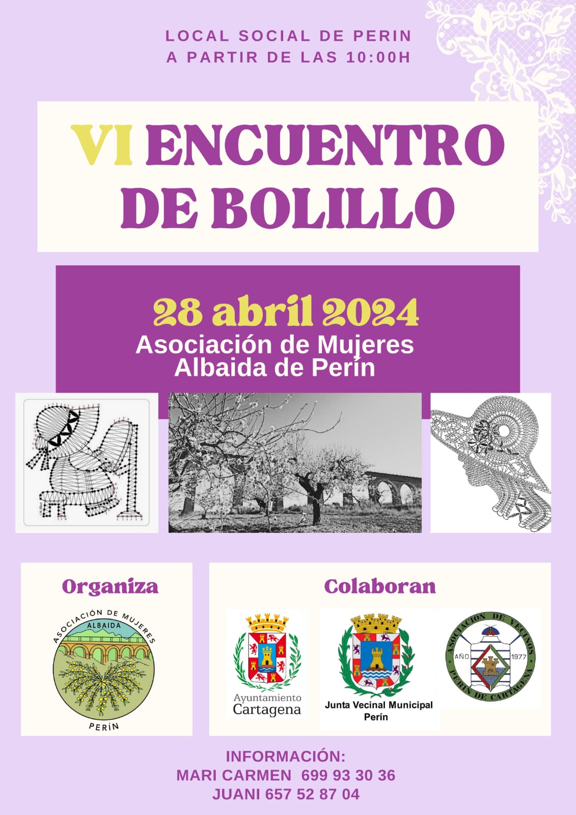 El próximo domingo 28 de abril Perín celebrará el `VI Encuentro de Bolillo´, un evento organizado por la Asociación de Mujeres Albaida de Perín con la colaboración de la Asociación de Vecinos de Perín, la Junta Vecinal Municipal de Perín y del Ayuntamiento de Cartagena.