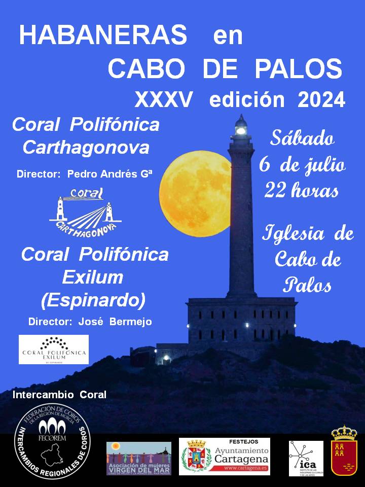 La Coral Polifónica Carthagonova, con cuarenta y seis años de trabajo continuado, en su afán de canalizar el movimiento cultural de la ciudad a través del canto coral, ha sido capaz no solo de participar en dicho movimiento sino de generarlo también ella misma organizando, desde hace treinta y cinco años, en el mes de julio y con la colaboración de la Concejalía de Festejos del Ayuntamiento de Cartagena, el “Concierto de Habaneras en Cabo de Palos”.