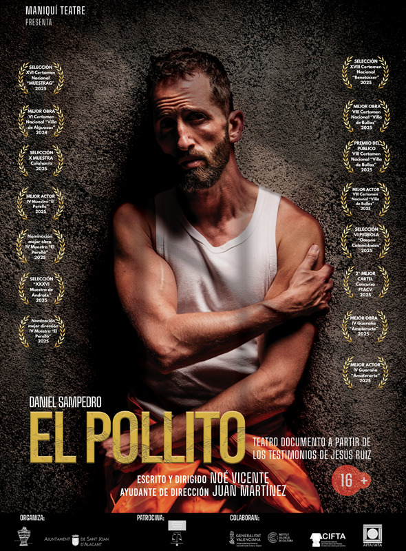El 9 de octubre, Maniquí Teatre con `El Pollito´, un montaje teatro documento que sigue la vida de Jesús Ruiz, apodado “El Pollito”, con una mezcla de humor, emoción y realismo. A través de sus testimonios reales, la obra narra su juventud rebelde, sus aventuras en el tráfico de drogas y su lucha por encontrar un camino diferente. Desde sus primeros encuentros con la marihuana hasta sus peripecias en el tráfico internacional que le llevará a pasar 7 años en varias prisiones de Perú.