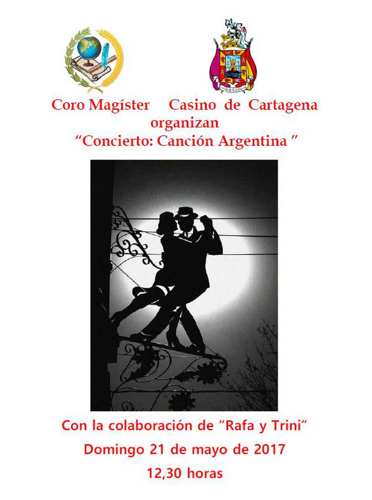 El Casino de Cartagena acoge este domingo, 21 de mayo, el estreno del concierto 'Canciones Argentinas', que interpretará la Coral Magister que dirige Antonio Gómez.