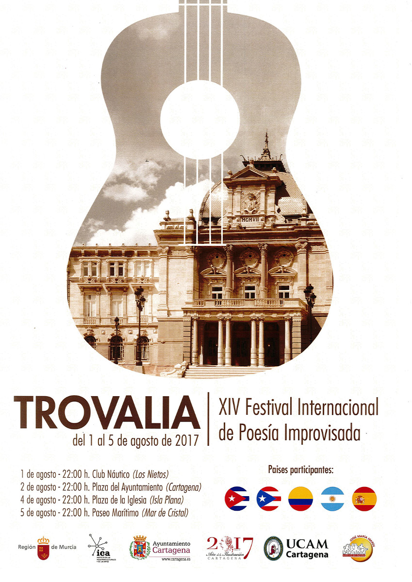 Por su parte, el presidente de la Asociación Trovera José María Marín ha destacado la presencia de las mejores figuras de la poesía improvisada del panorama actual sudamericano, como los puertorriqueños Roberto Silva y Juan Ramón Figueroa, además de otros viejos conocidos del festival, Ricardo Pino y Leandro Camargo, que el año pasado “nos emocionó e hizo llorar a casi cientos de personas en la puerta de la Iglesia de Isla Plana”.