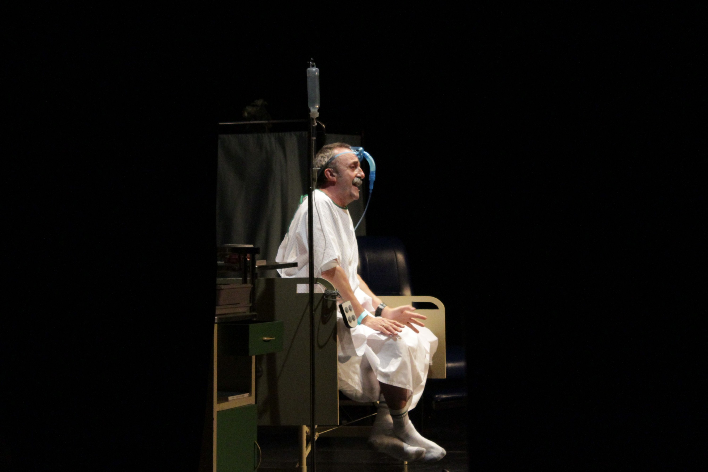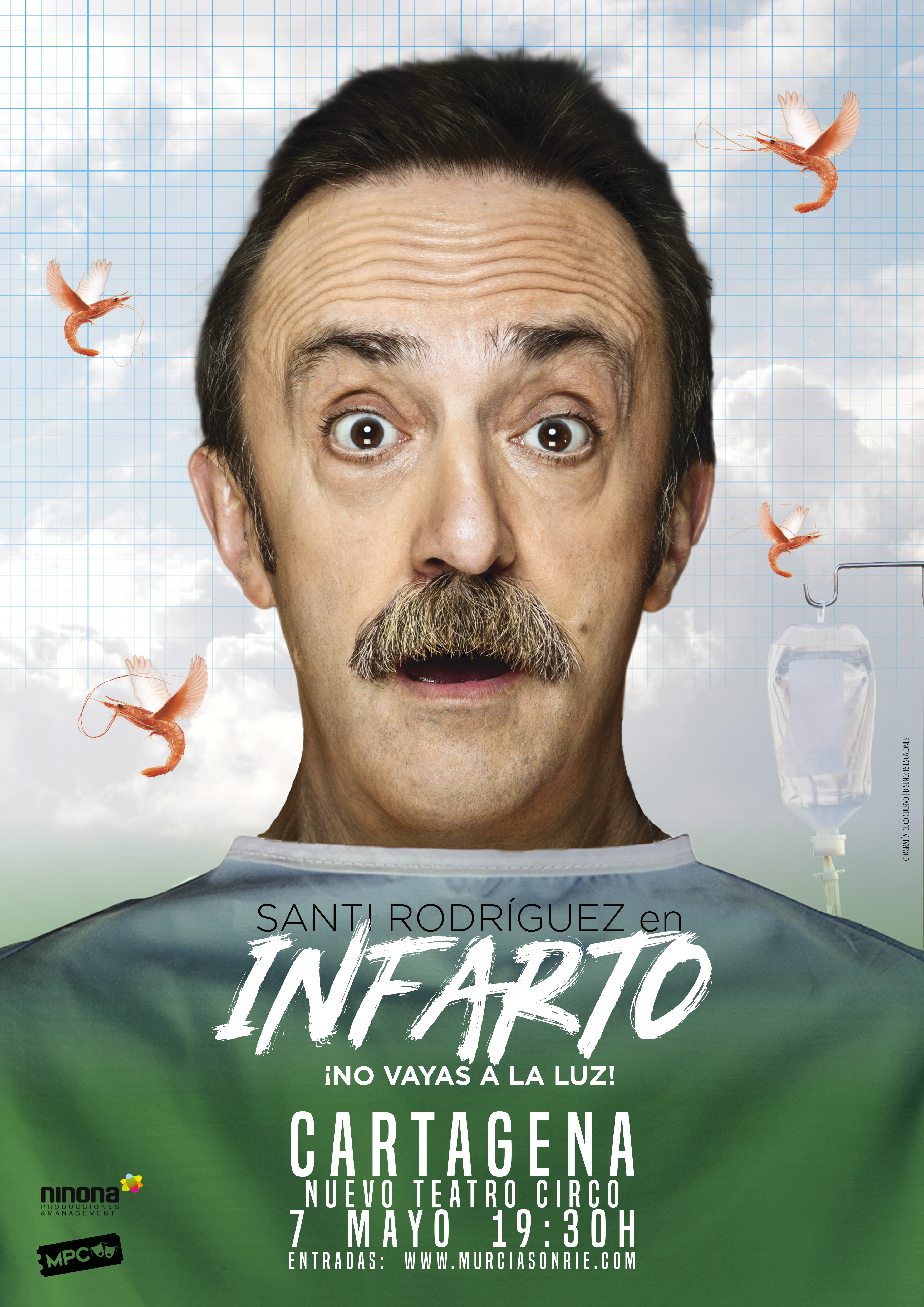 ‘Infarto, ¡No vayas a la luz!’ narra cómo Santi Rodríguez esquivó la muerte y su juramento de disfrutar de esta segunda oportunidad que le cayó del cielo. Y todo ello con humor, con brillantez y con teatro, que es lo suyo. Sobre el escenario, Rodríguez en camisoncito de hospital y gotero en mano, poco más necesita este actor para hacer reír al público con sus historias.