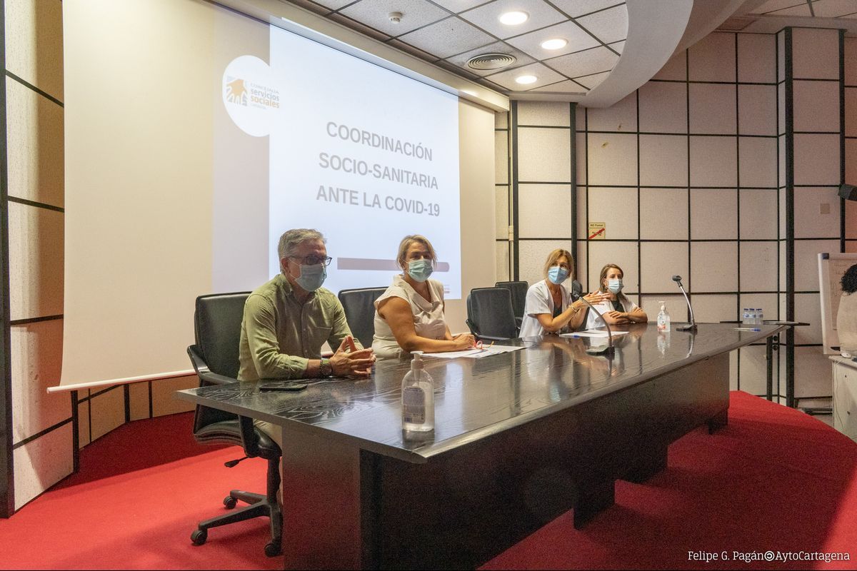 pioneros en la coordinación socio-sanitaria ante la Covid-19, han sido expuestos este viernes 11 de septiembre en el hospital del Rossell ubicado en Cartagena, durante una reunión en la que han participado profesionales de los Servicios Sociales municipales, responsables y trabajadores sociales de los centros de salud del municipio y la Federación de Asociaciones de Vecinos (FAVCAC).