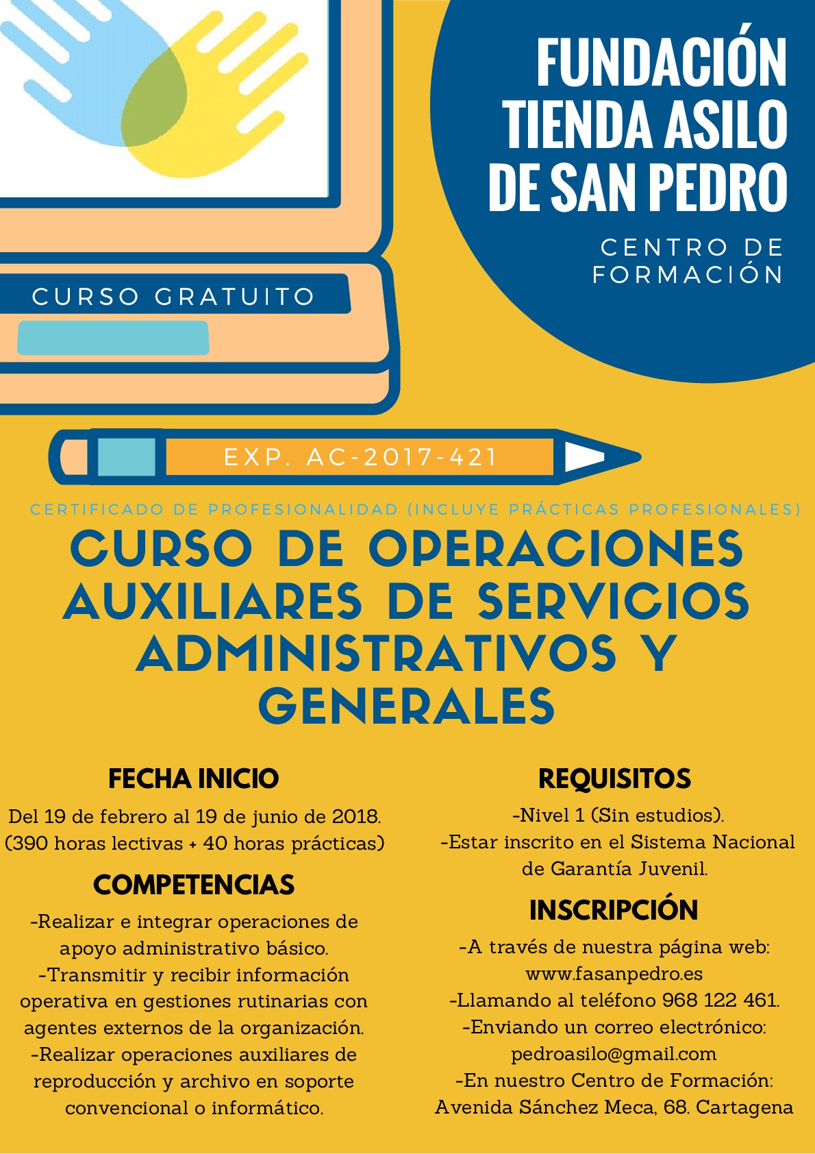 La Fundación Tienda Asilo organiza esta formación que cuenta con un 'Certificado de Profesionalidad', totalmente gratuito, y se impartirá a partir del 19 de febrero y finalizará el 19 de junio
