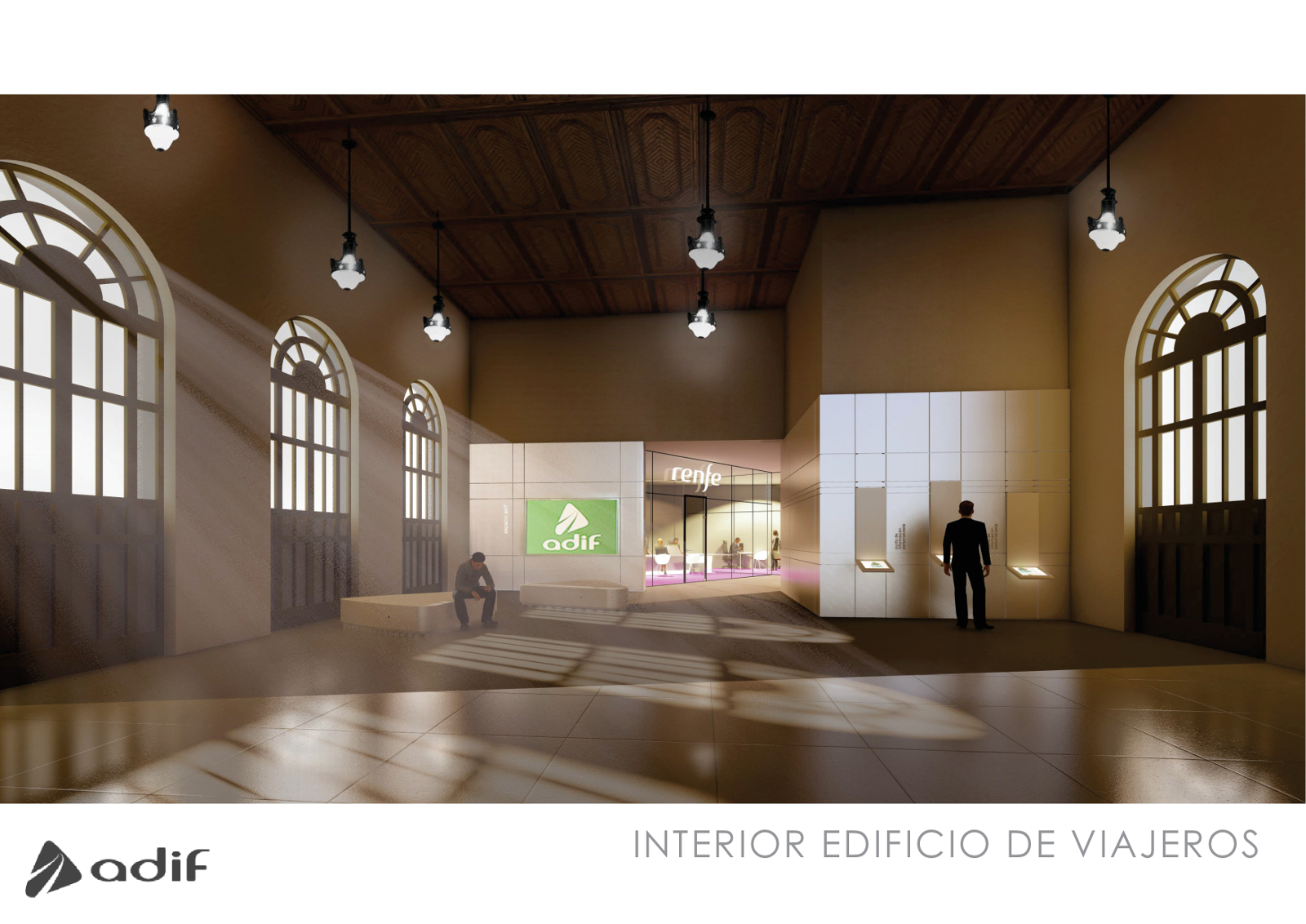 trabajos previstos en el interior del edificio tienen por objeto redistribuir y ordenar los espacios de espera, la zona de venta de billetes, los aseos, la cafetería y la oficina de alquiler de vehículos, incluyendo, además, un nuevo espacio de información y atención al viajero. De igual modo, está previsto crear nuevas áreas para los trabajadores, como vestuarios, sala de descanso, zona para personal de seguridad y almacén. El diseño recoge también que los elementos más característicos, como el falso techo de artesonado en madera y las lámparas modernistas, se conservarán.