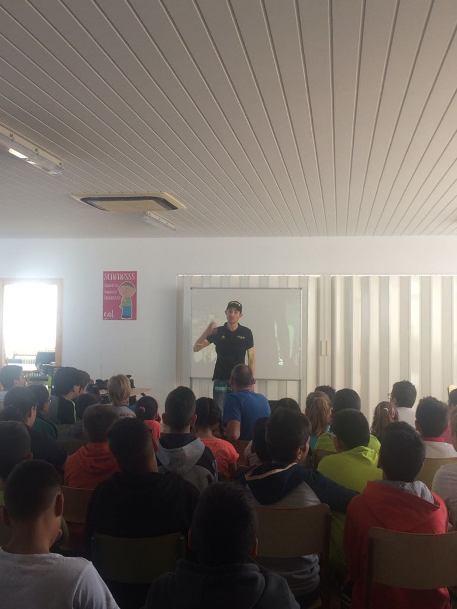 alumnos del CEIP San Isidoro de El Algar vivieron este lunes un encuentro con el triatleta de larga distancia