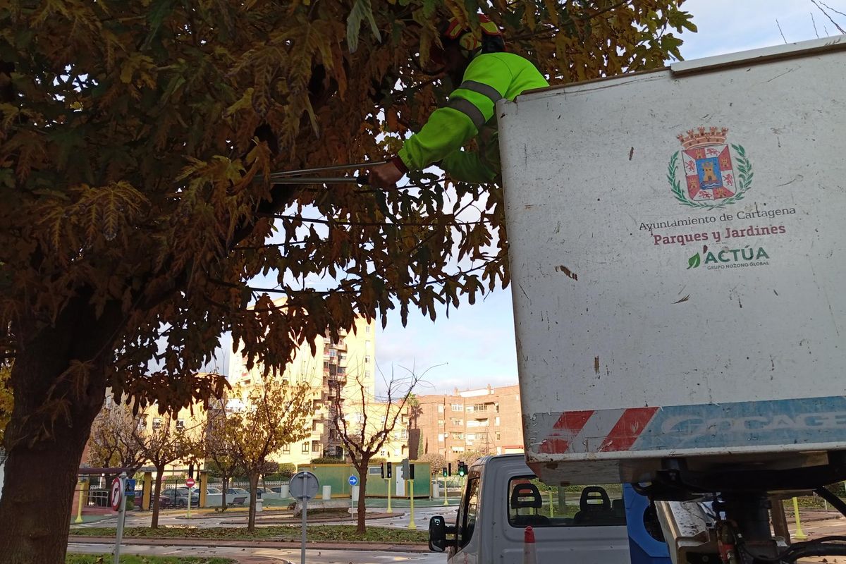 El Ayuntamiento de Cartagena está reforzando las tareas de limpieza en el Parque de Educación Vial, enfocándose en la poda de moreras y pinos, con miras al regreso de las vacaciones escolares de Navidad.