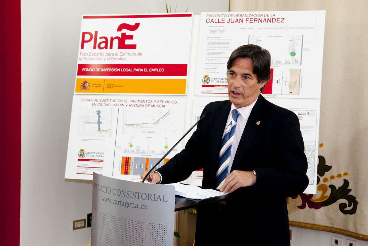 Estas declaraciones las ha realizado Albaladejo durante la presentación del tercer bloque de actuaciones del Plan Estatal, un conjunto de obras que se van a llevar a cabo en la zona del casco urbano (cinturón peatonal de El Molinete, renovación de la plaza López Pinto) y el ensanche de la ciudad (iluminación del Acceso Norte, urbanización de la calle Juan Fernández), de las cuales los técnicos municipales ya están elaborando los informes para su adjudicación.