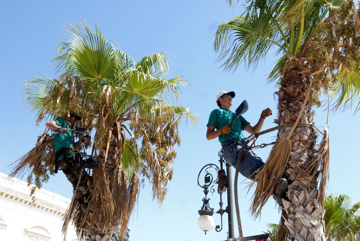 La poda de palmeras está a cargo de personal especializado en este trabajo, lo que supone una mayor rapidez y eficacia en la ejecución del trabajo, que deberá estar terminado para el próximo viernes 14 de septiembre.