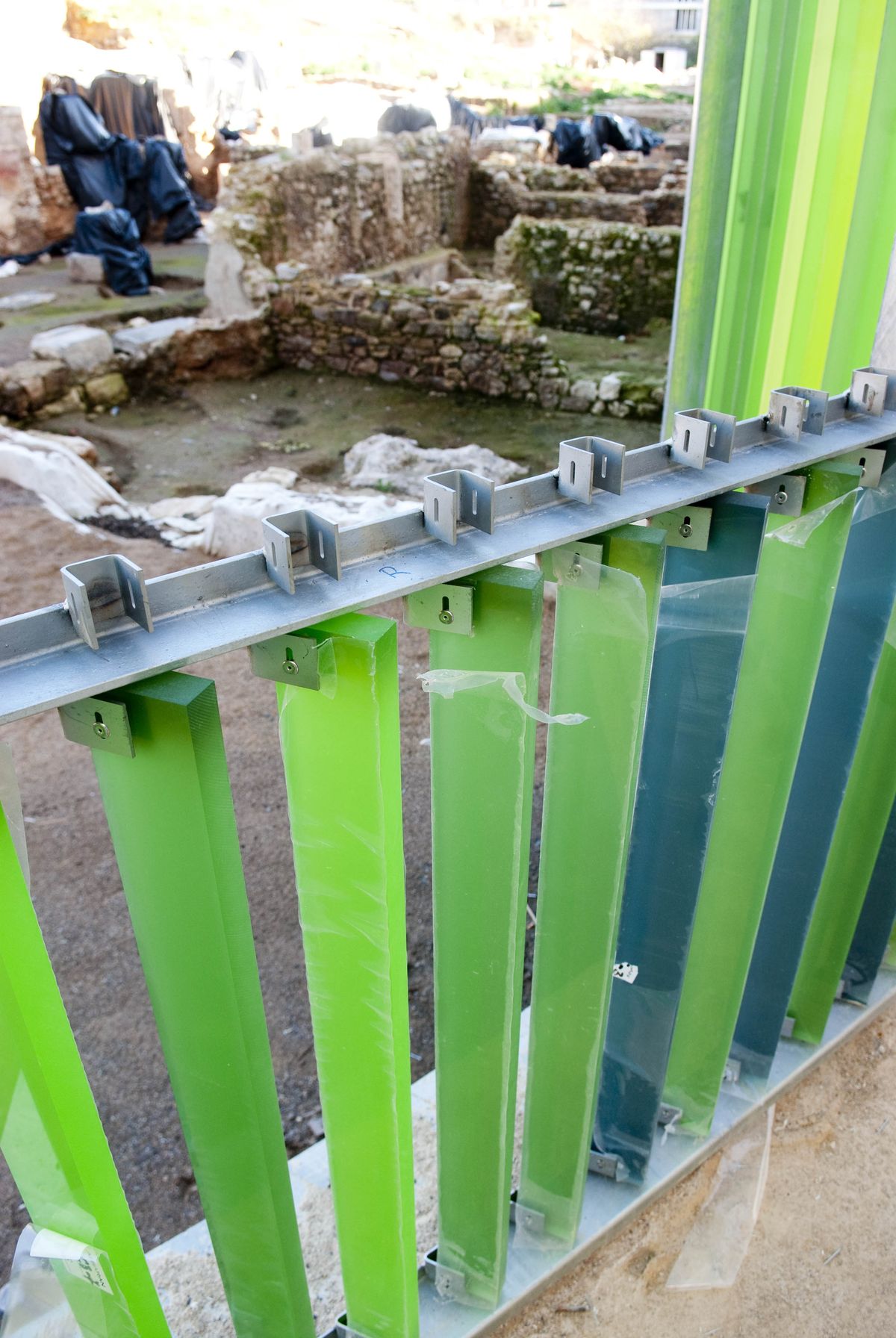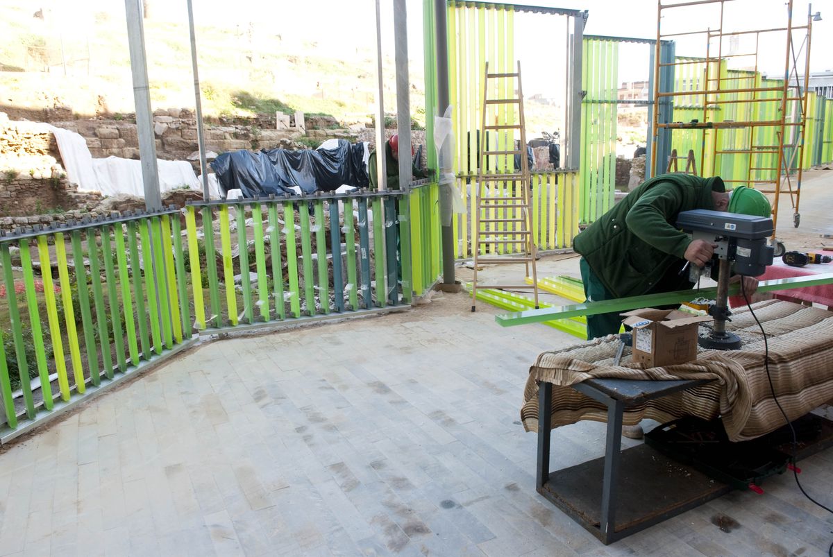 Ya han comenzado los trabajos de colocación de estos paneles en la calle Balcones Azules, cuyo objetivo será proteger a la vez que permiten la visión del futuro parque arqueológico