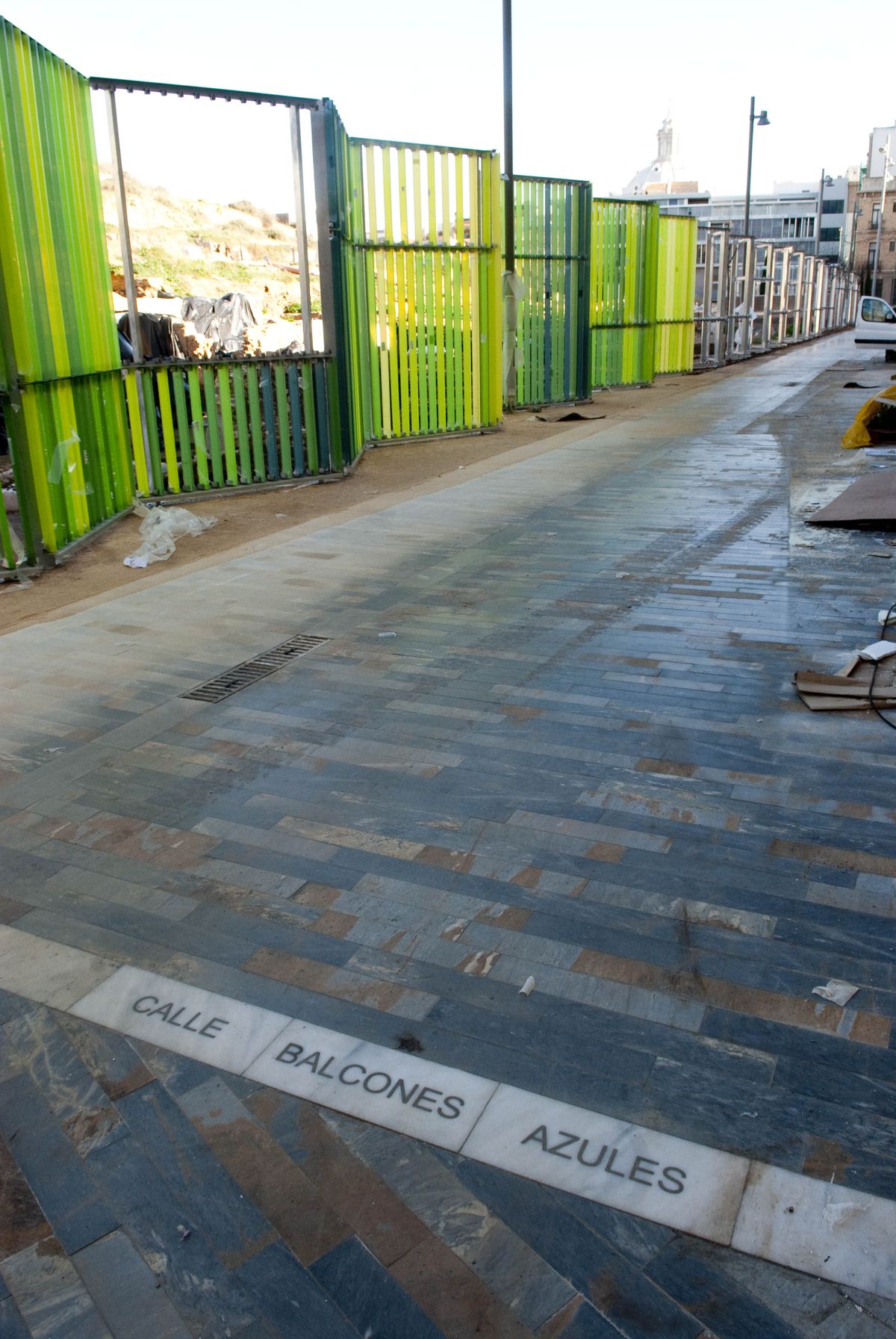 Esta valla, compuesta por láminas de material plástico de unos 10 centímetros de ancho y 4 centímetros de grosor, se está colocando a lo largo de la calle Balcones Azules y llega hasta el nuevo Centro de Salud del Casco Antiguo, siendo pues el colofón de uno de los nuevos accesos peatonales al Molinete.
