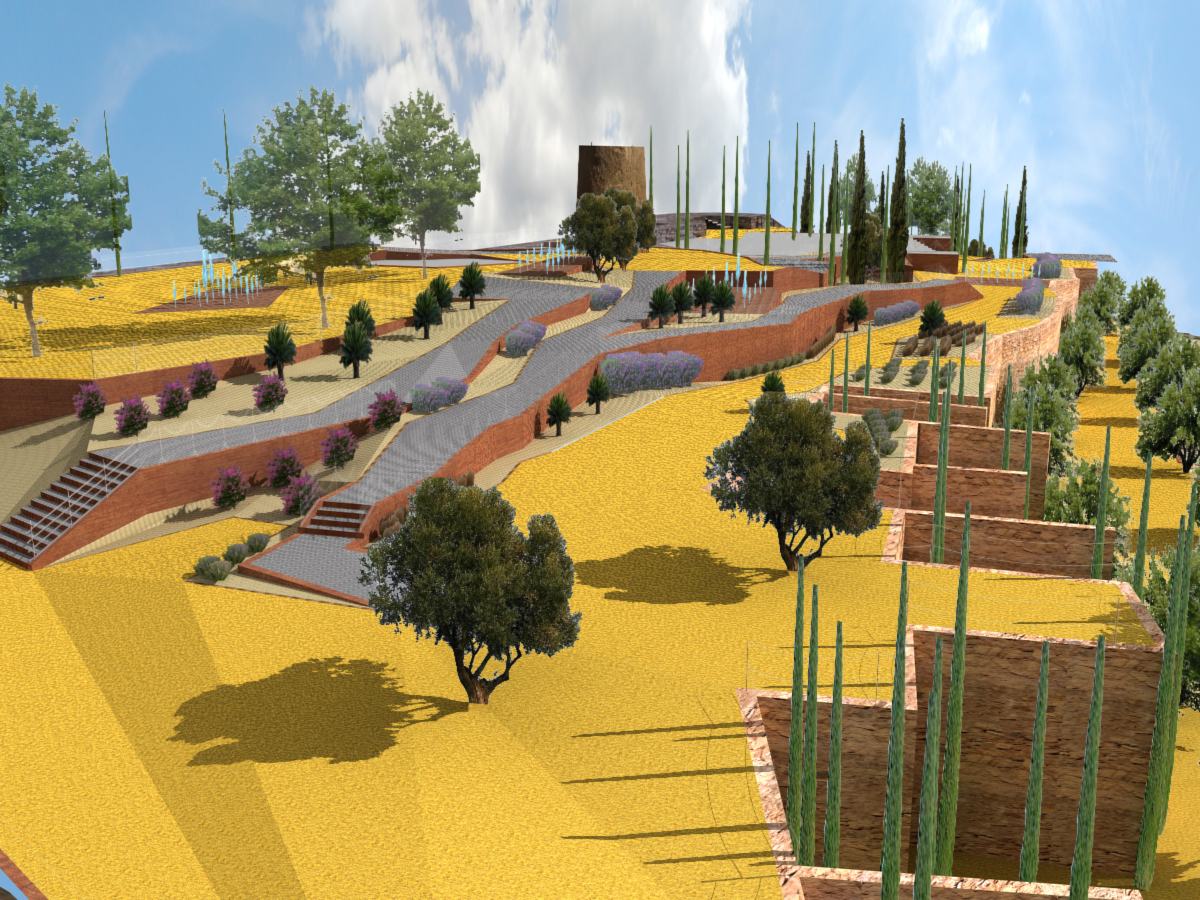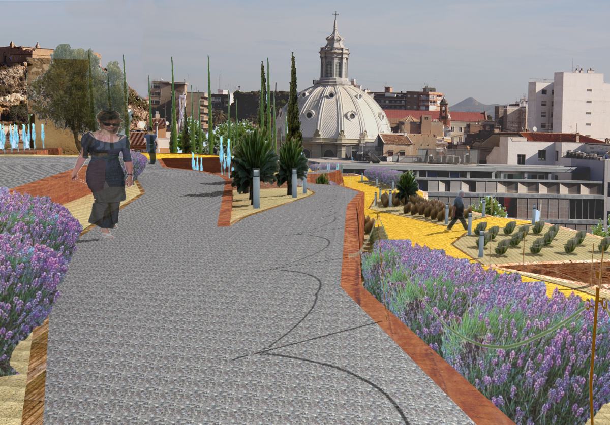 Su principal novedad será su accesibilidad desde la ciudad y las vistas que tendrá sobre ella, especialmente sobre otras zonas arqueológicas como la de Morería y Balcones Azules. Sus rampas y zonas de esparcimiento estarán pavimentadas con piedra del cabezo, similar a la utilizada en las zonas peatonales, y un pavimento similar al utilizado en las zonas infantiles, que invitarán a pasear.