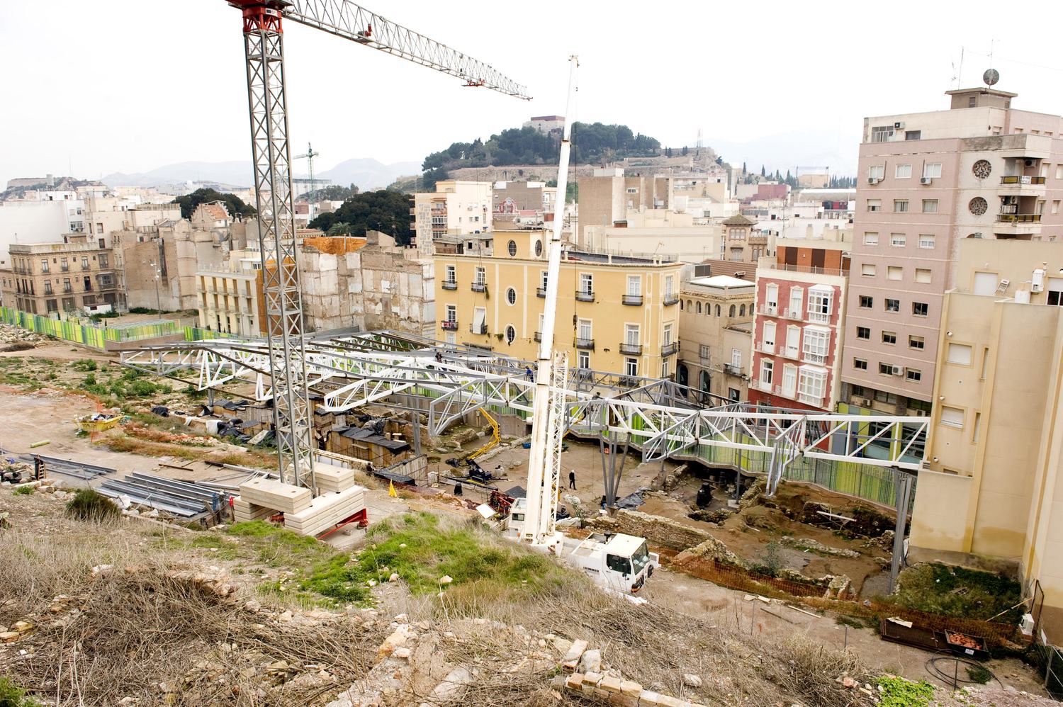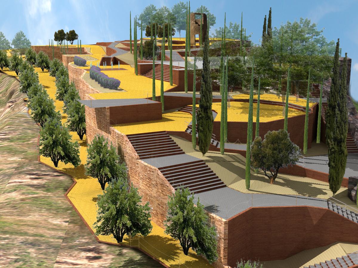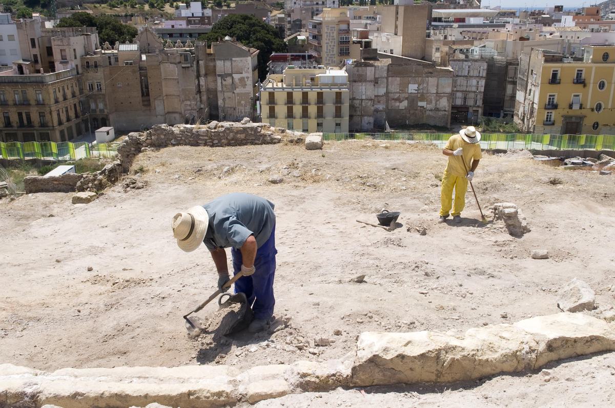 Esta actuación, incluida en el Plan E, se adjudicó a la empresa Transportes Europeos del Campo de Cartagena, S.L., con un presupuesto de 3.787.540 euros. Los trabajos de prospección comenzaron en la Muralla del Deán o de Felipe V, mientras que las obras arrancaron con la apertura del vial en la prolongación de la calle del Adarve hacia la cima del Cerro, donde se ha habilitado un mirador hacia la ciudad y hacia los restos recuperados.