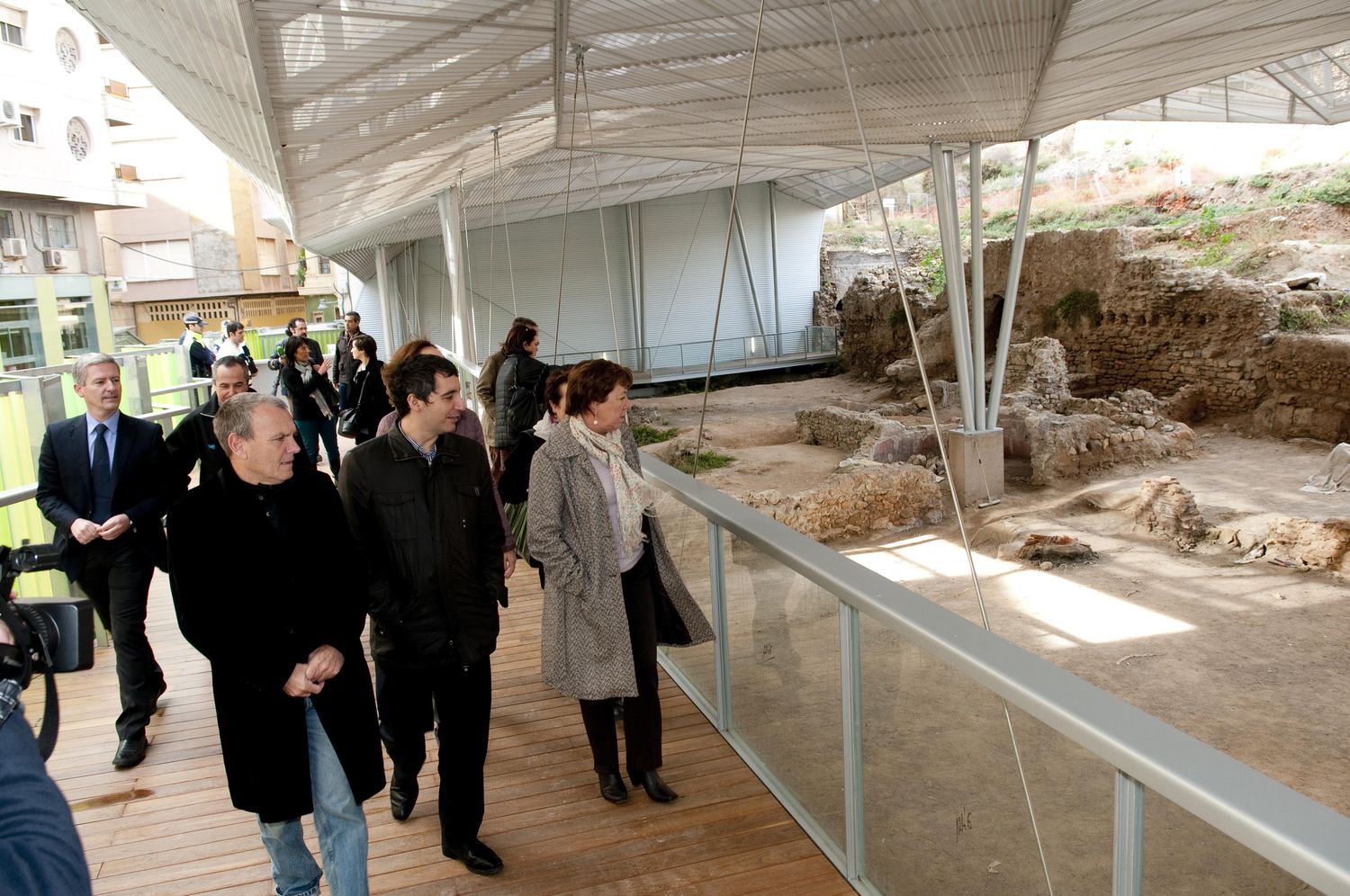 La visita de los restos se realiza de forma volada, a través unas pasarelas que soporta la estructura metálica que protege el conjunto, dando acceso directo a algunos de los lugares más significativos.