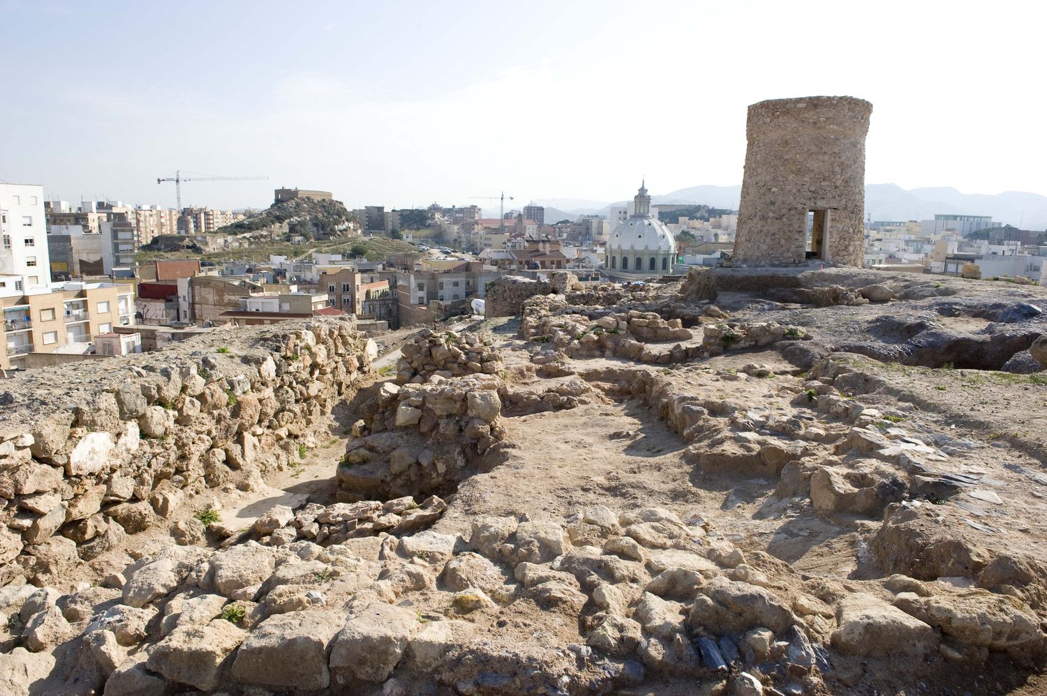 Girando la mirada hacia la zona del ensanche, el Molinete permite contemplar el antiguo Almarjal que bordeaba la ciudad por el norte, la laguna que, según cuentan los textos de Polibio en torno al 209 a.C., cuenta cómo la laguna fue utilizada para sorprender a las tropas púnicas emplazadas en la ciudad aprovechando la el estudio de las mareas y la bajada de las aguas.