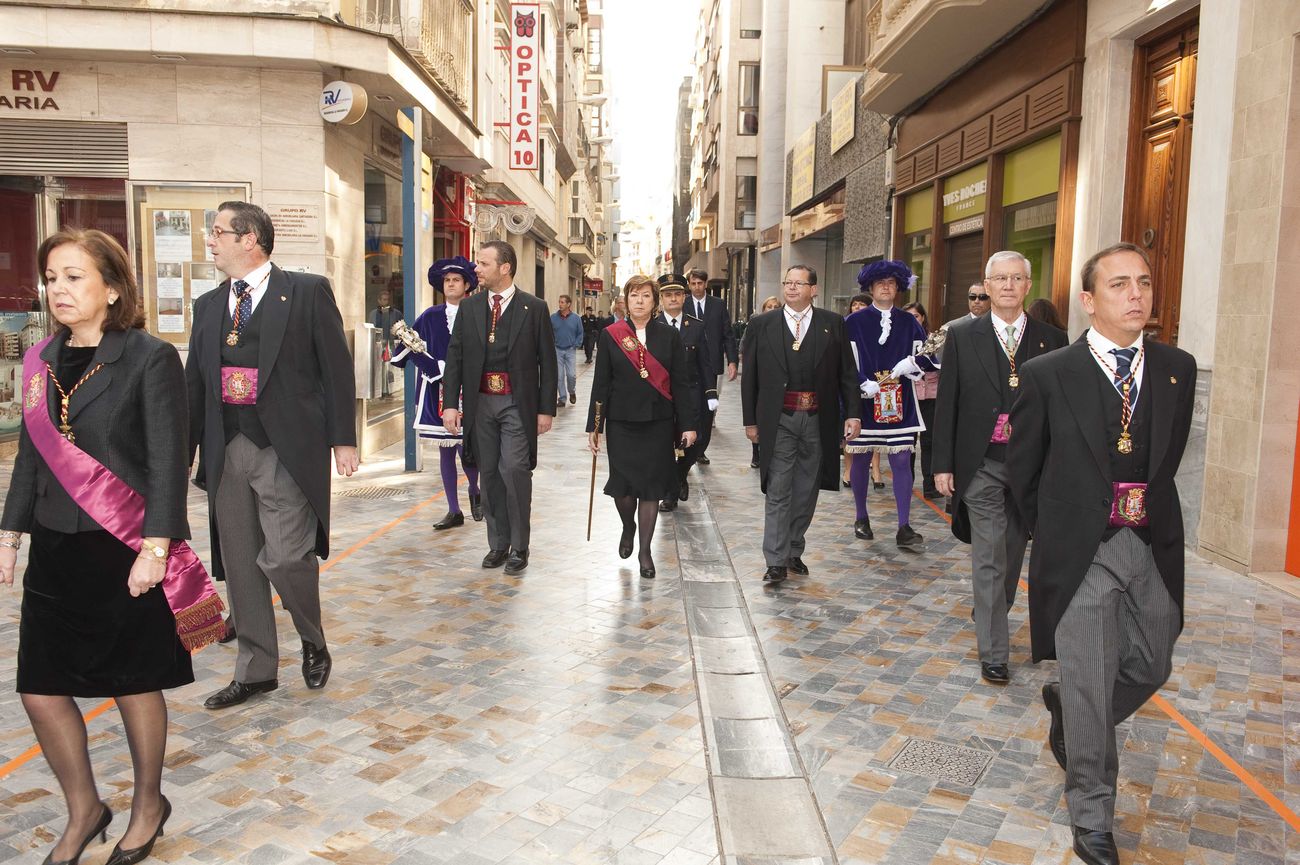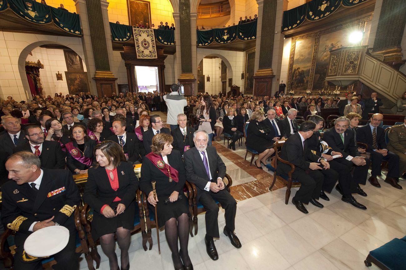 Sobre las 10,30 horas se iniciaba la misa en honor a la Caridad, oficiada por el obispo de Cartagena, José Manuel Lorca Planes, en la que la alcaldesa, Pilar Barreiro, ha cumplido con la tradición de la Ofrenda de la Onza de Oro a la Patrona, que data del año 1762 y que simboliza la aportación económica que realiza todos los años el Ayuntamiento de Cartagena en favor de los enfermos pobres del Santo y Real Hospital de Caridad.