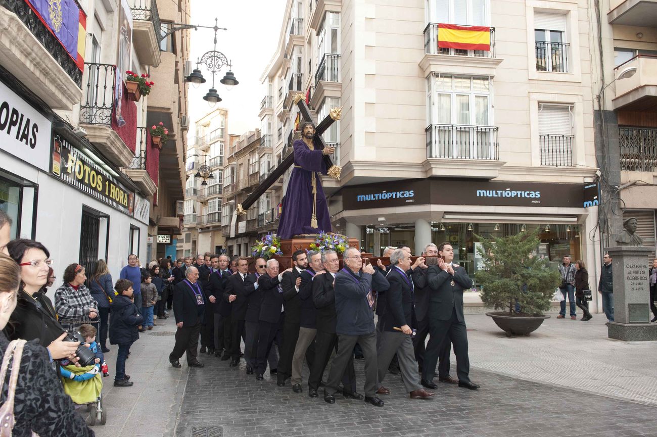 La sencillez de los traslados de las Cofradías Marraja y California protagonizaron la jornada del Sábado de Pasión. Cartageneros y turistas se agolpaban en las calles del centro de la ciudad para ser testigos de los tradicionales Vía Crucis.