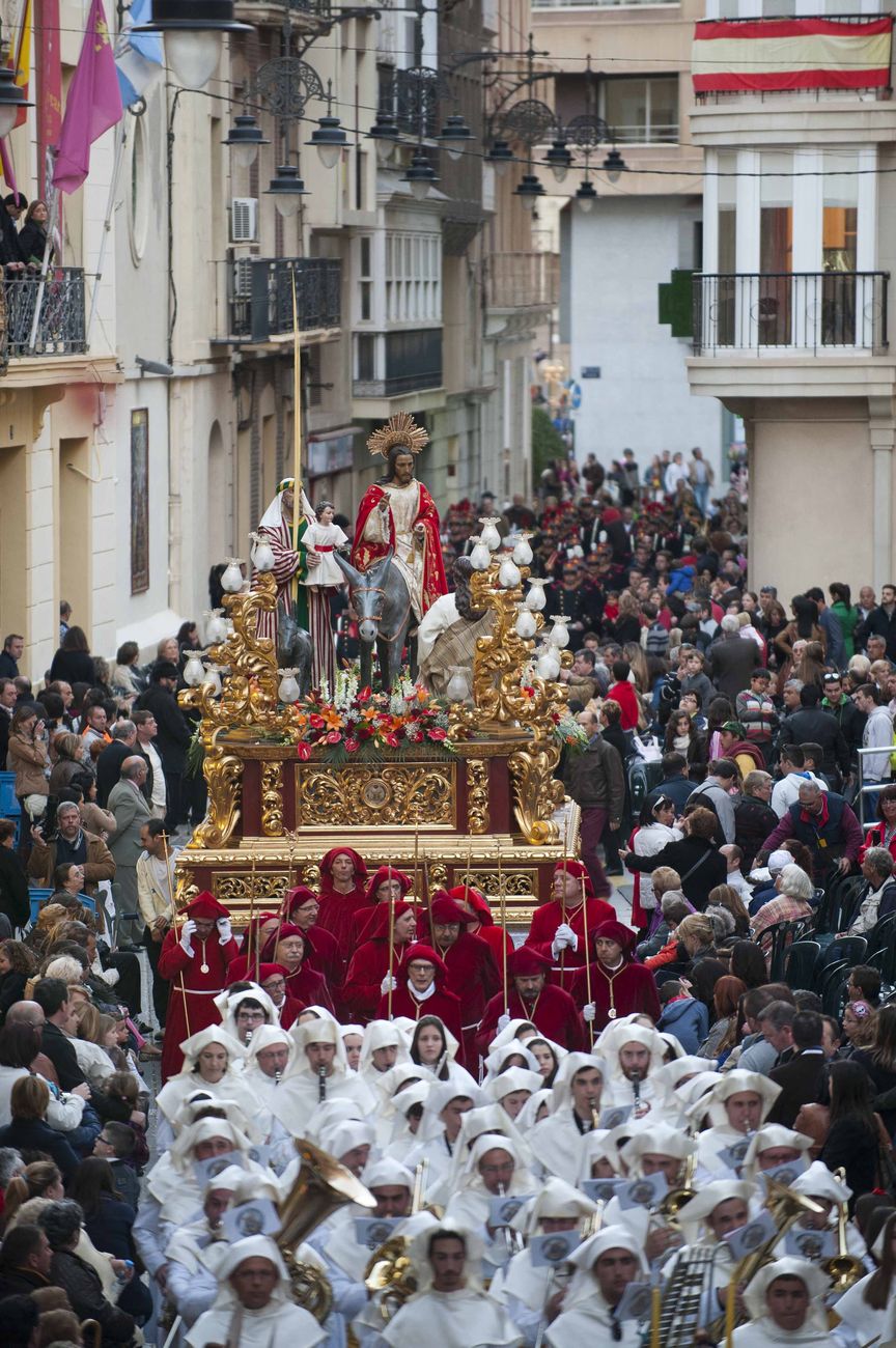 La popular procesión de La Burrica volvió a salir un año más, a pesar de la amenaza de lluvia que se disipó conforme avanzaba la tarde. Las palmas de la mayoría de los tercios y las ramas de olivo en recuerdo al Hijo de Dios eran portadas por los niños como hachotes, marcando el paso y siguiendo el ritmo de los tambores.