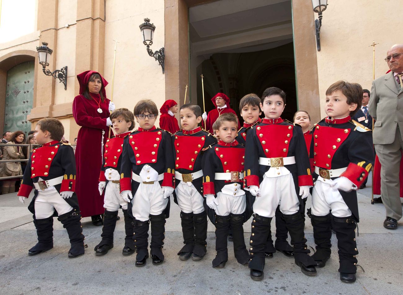 Cientos de cartageneros se congregaron en torno a la Iglesia de Santa María de Gracia para ver la salida de esta agrupación California del Domingo de Ramos