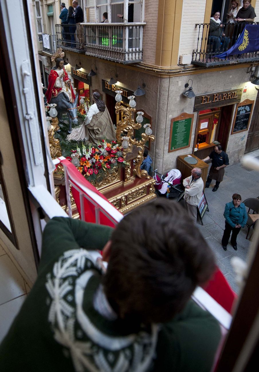 Pasadas las siete de la tarde, el titular de la procesión, el trono de la Entrada de Jesús en Jerusalén, se asomaba a las puertas de Santa María de Gracia, coincidiendo con el arriado de bandera de Capitanía General.