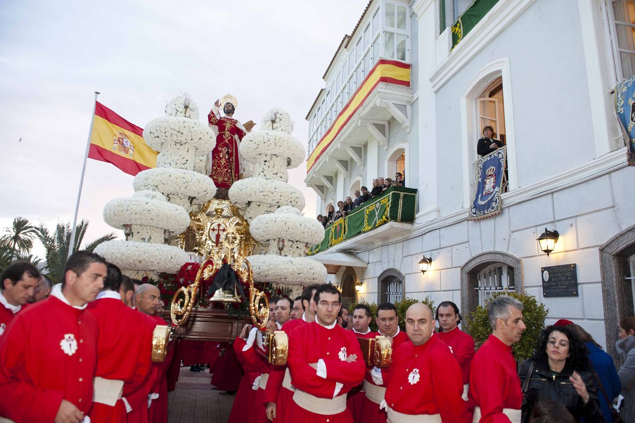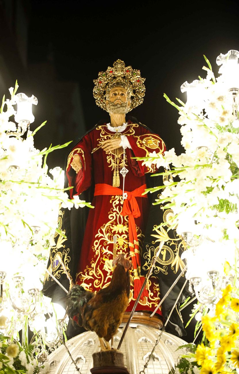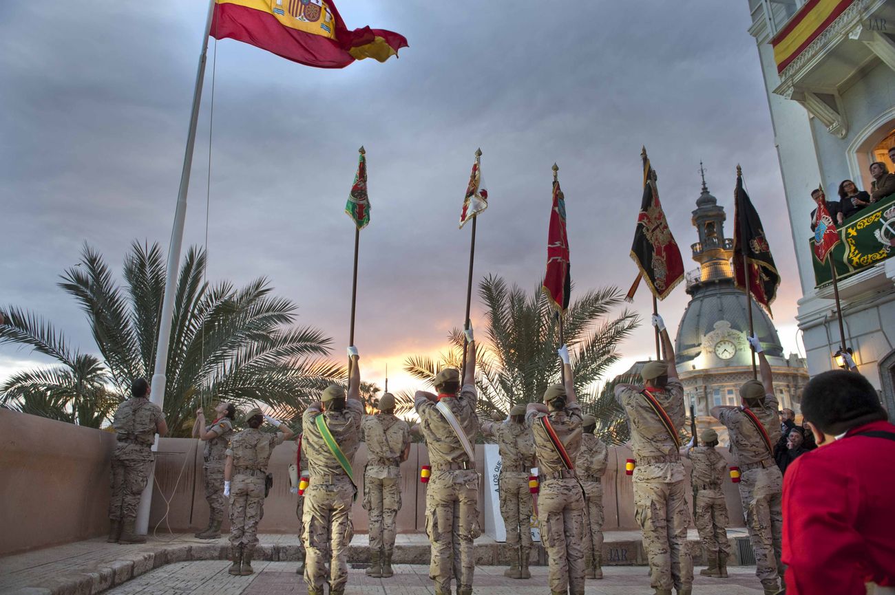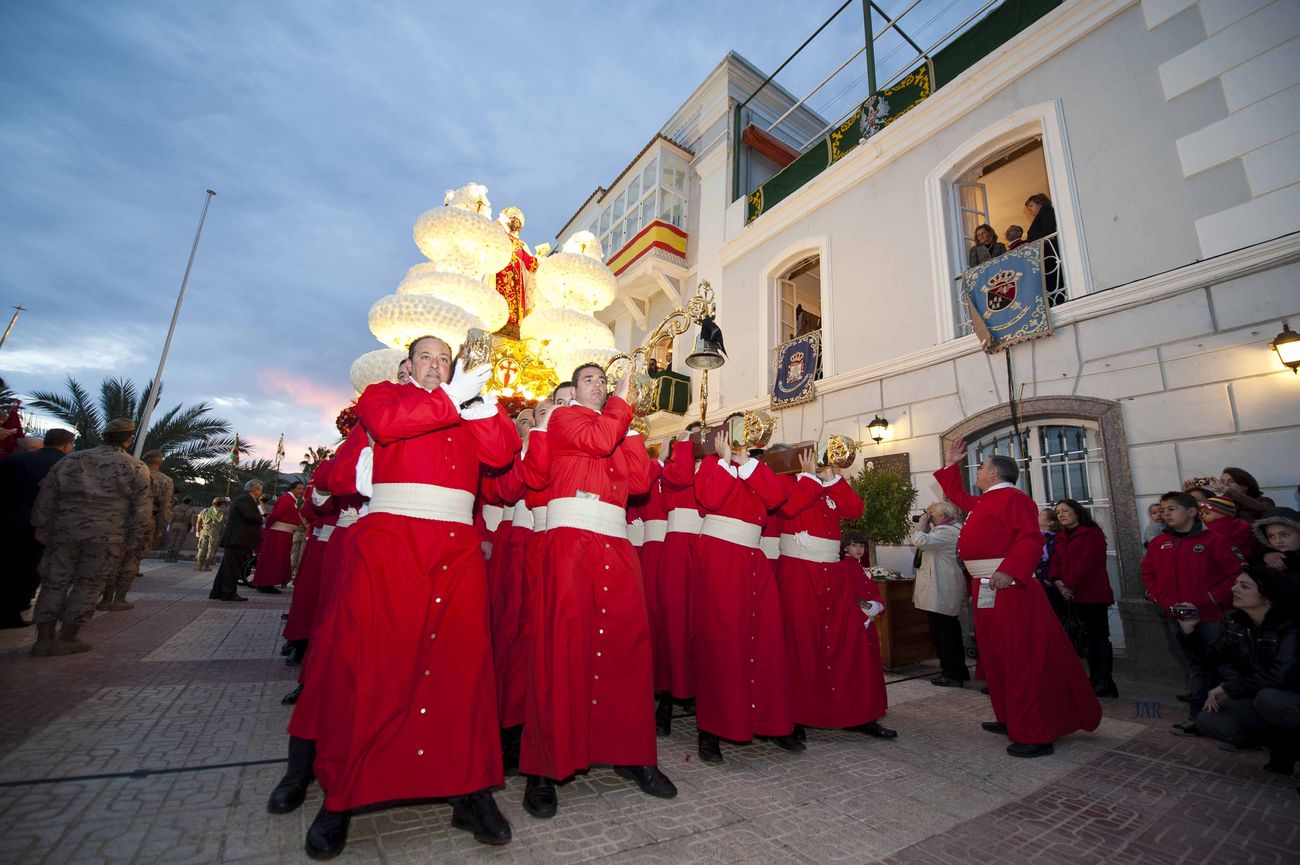 La unión entre la tradición de la fiesta y el Ejército continuó en la tarde ayer con la salida de Santiago Apóstol desde el Gobierno Militar, que fue presenciada por la alcaldesa, Pilar Barreiro. Por último, y pasadas las ocho de la tarde, el trono del Apóstol San Pedro se encaminaba hacia la puerta del Arsenal Militar, escoltado, por segundo año consecutivo, por guardiamarinas de la Escuela Naval Militar que tienen vinculación profesional o personal con Cartagena.