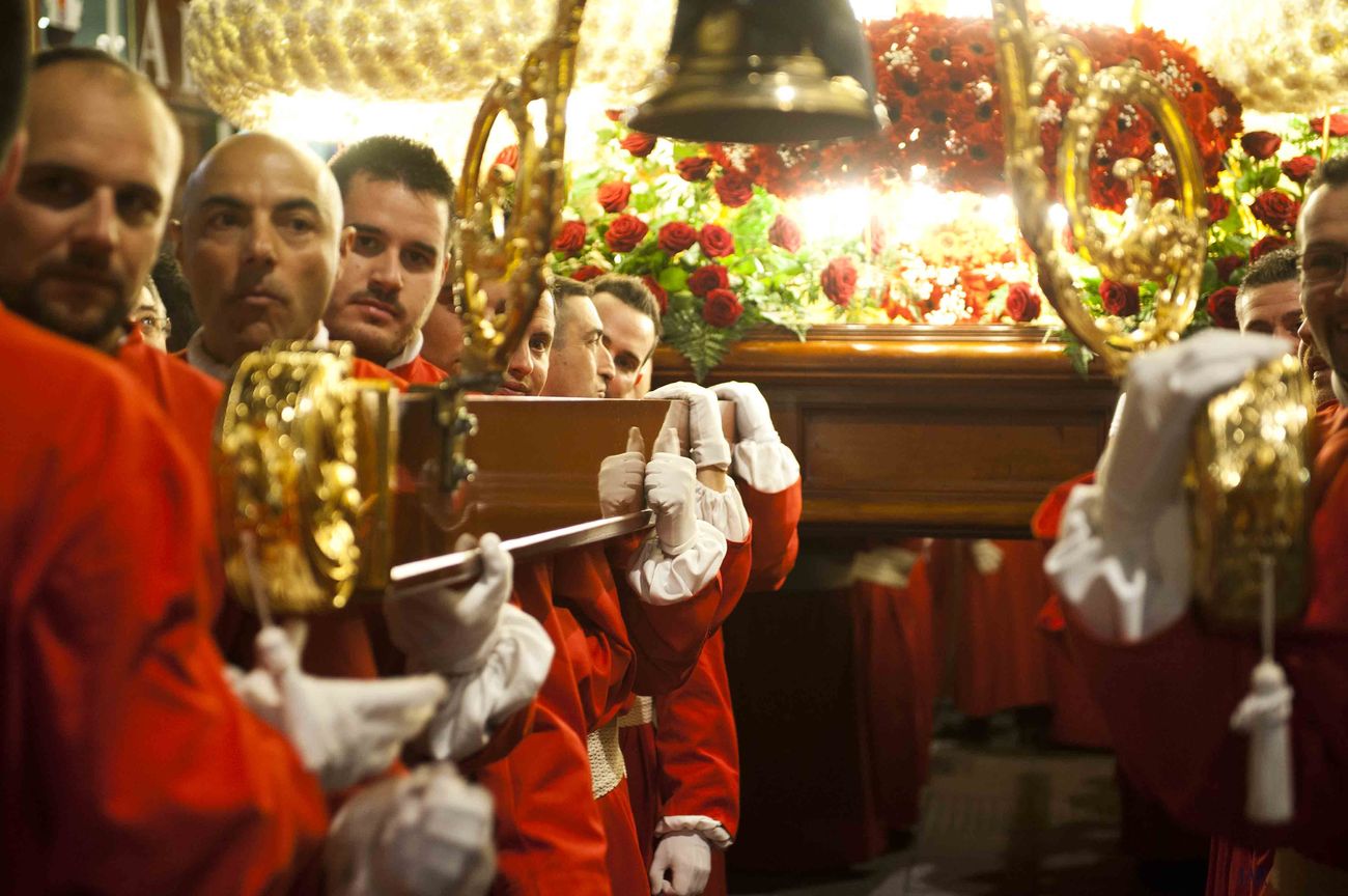 El Martes Santo en Cartagena se vive de una manera distinta. El orden característico de la Semana Santa de la ciudad se refuerza por el espíritu castrense que envuelve la salida de los pasos. La procesión del Traslado de los Apóstoles de la Cofradía California acapara una jornada que culmina con el encuentro de los tronos de Santiago Apóstol, San Juan Evangelista y San Pedro Apósto en la Plaza de San Sebastián.