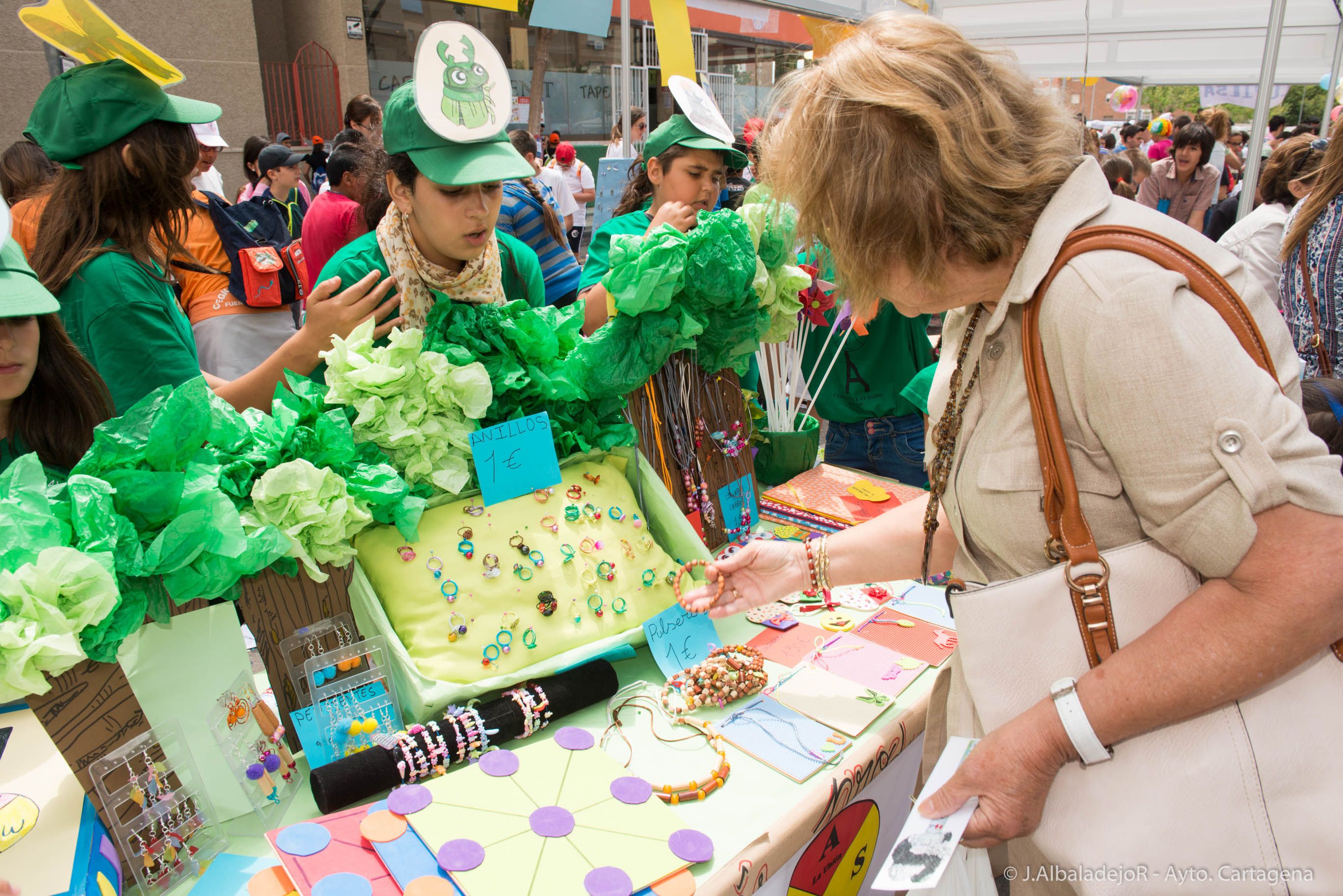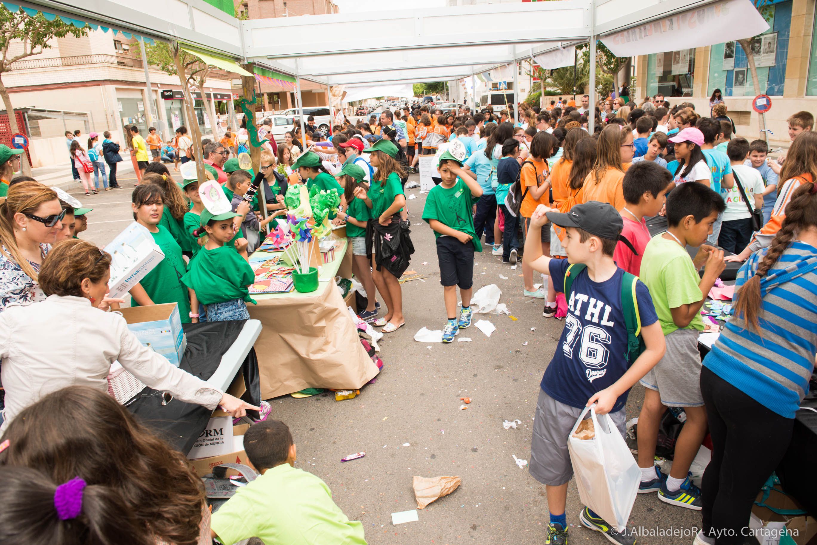 Más de 600 escolares han mostrado sus aptitudes como empresarios y emprendedores a través del VI Mini Market, que ha tenido lugar esta mañana en la calle Ribera de San Javier, en Cartagena. El Proyecto EJE (Empresa Joven Europea) y EME (Emprender en Mi Escuela) de la Región de Murcia pretende desarrollar con esta iniciativa, el espíritu emprendedor en jóvenes de Primaria y Secundaria de 16 colegios e institutos de Cartagena y sus alrededores, a través de la experiencia de la creación y gestión de miniempresas en el aula. Han asistido la concejala de Educación, Josefa Maroto, y de Mujer, Clara Heredia, del Ayuntamiento de Cartagena.