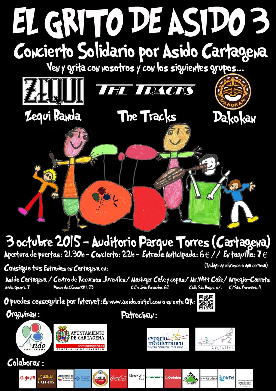 Asido organiza por tercer año El Grito, un concierto solidario en el que participarán tres grupos de rock, pop y percusión. Es el primer año que se organiza en la ciudad portuaria y se celebrará este sábado 3 de octubre en el Auditorio Parque Torres