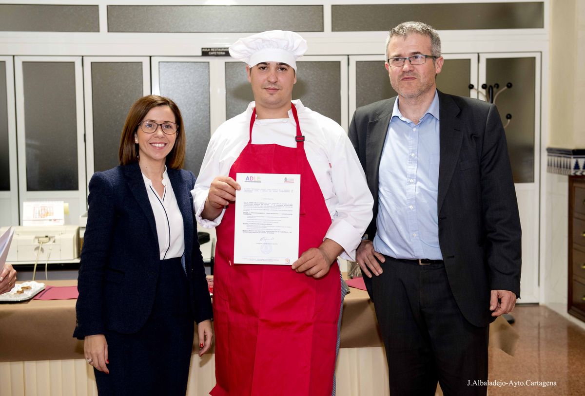Desde la Agencia de Desarrollo Local y Empleo (ADLE), como centro colaborador del Servicios Regional de Empleo y Formación, se están realizando distintos cursos gratuitos de formación ocupacional financiados por el Fondo Social Europeo. Uno de ellos es el recién clausurado sobre Operaciones Básicas de Cocina, que tuvo su acto de entrega de diplomas en la tarde del martes 23 de febrero.