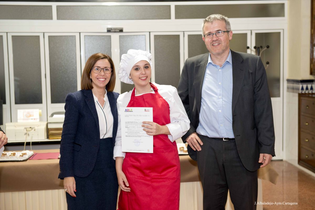La cita, que se desarrolló en La Milagrosa, estuvo presidida por la vicealcaldesa y presidenta de la ADLE, Ana Belén Castejón, acompañada del gerente de la Agencia, Diego Peñarrubia, aunque los protagonistas absolutos fueron los 13 alumnos que han finalizado la parte teórica con calificación de apto tras cursar módulos con temáticas como el aprovisionamiento, preelaboración y conservación culinarias, aprovisionamiento de materias primas en cocina o elaboración de platos combinados y aperitivos, entre otras. Además, durante el acto se ofrecieron unos tentempiés elaborados por los mismos cocineros nóveles.
