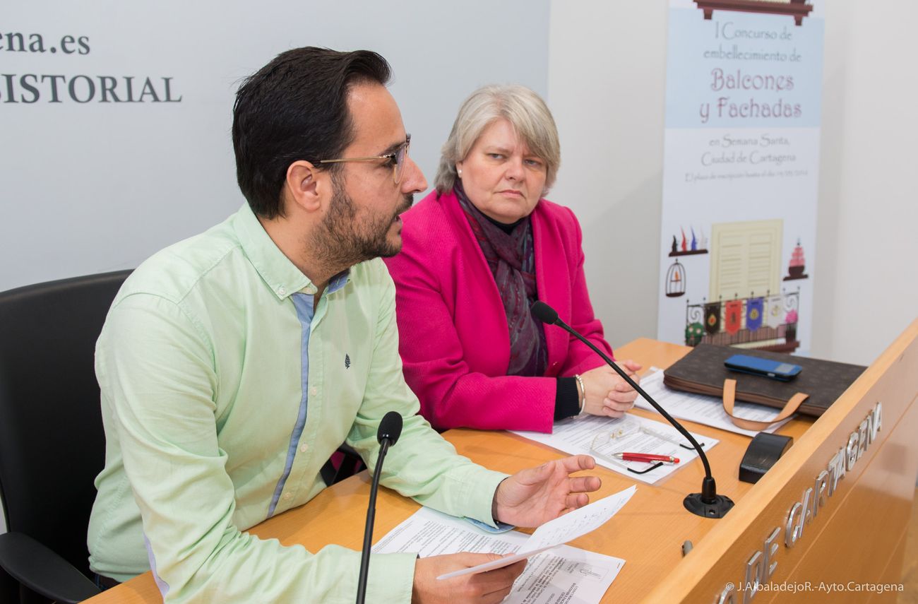 El concejal de Cultura, David Martínez, ha sido el encargado de presentar el concurso de embellecimiento de balcones hoy, miércoles 24 de febrero, en la sala de prensa del palacio consistorial; acompañado a su vez por la presidenta de la asociación Mujeres Cofrades, Victoria Botí.