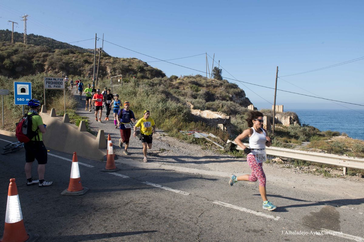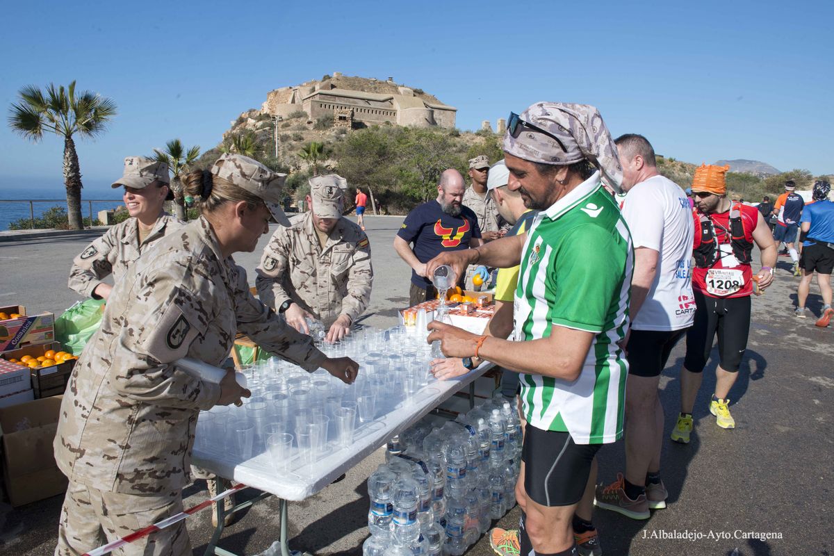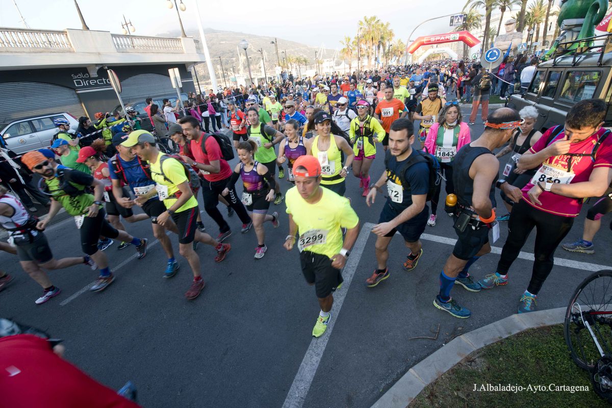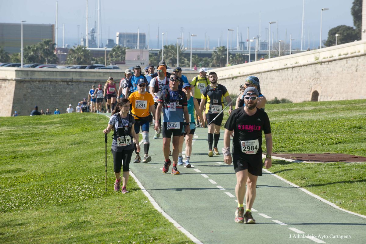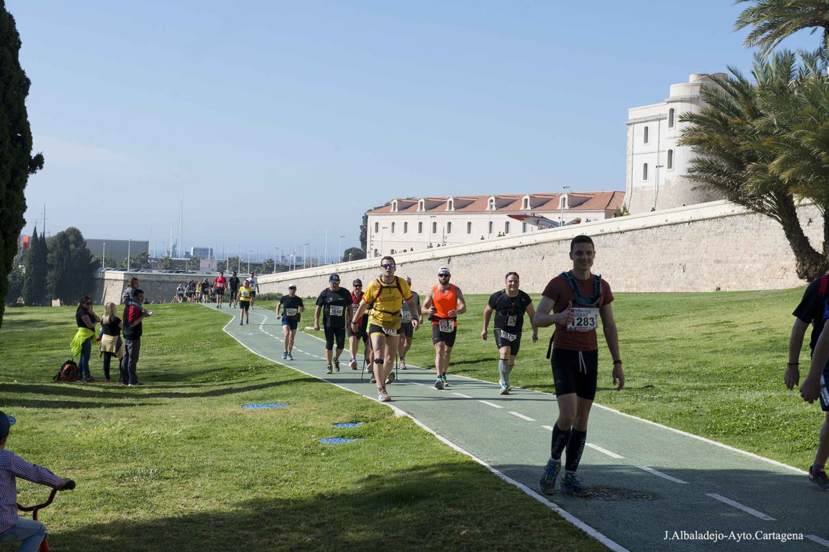 La prueba se inició a las ocho de la mañana en el puerto de la ciudad, tras el solemne izado de bandera. Los casi cuatro mil participantes de muy variada condición física, ya que había corredores de ultratrial, fondistas, marchadores o simples senderistas, se dirigieron hacia el Castillo de Los Moros, y de allí al Calvario, San Julián, Trincabotijas, cala Cortina, San Leandro, Fuerte de Despeñaperros, Castillo de la Concepción, Molinete, Fuerte de Navidad, la Podadera, Fajardo, Galeras, la Atalaya y Roldán, para terminar en la Escuela de Infantería de Marina, con un desnivel acumulado de unos 1.600 metros y bellísimas vistas sobre el campo, la ciudad y la bahía de Cartagena.