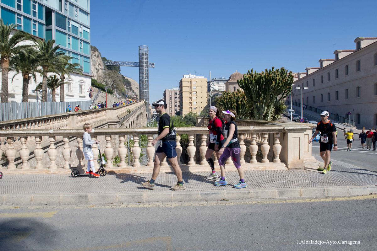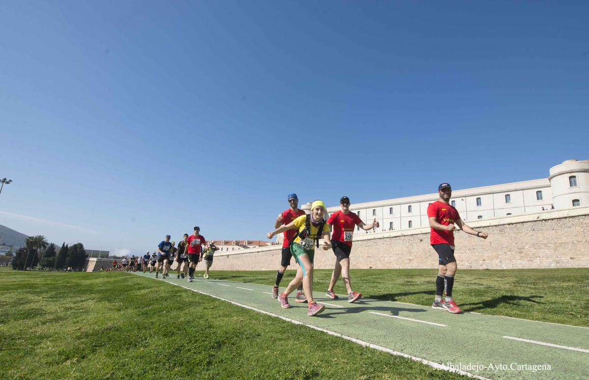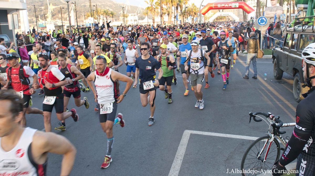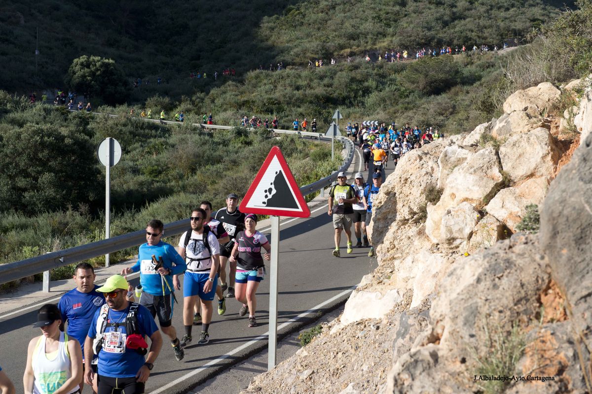 La prueba se inició a las ocho de la mañana en el puerto de la ciudad, tras el solemne izado de bandera. Los casi cuatro mil participantes de muy variada condición física, ya que había corredores de ultratrial, fondistas, marchadores o simples senderistas, se dirigieron hacia el Castillo de Los Moros, y de allí al Calvario, San Julián, Trincabotijas, cala Cortina, San Leandro, Fuerte de Despeñaperros, Castillo de la Concepción, Molinete, Fuerte de Navidad, la Podadera, Fajardo, Galeras, la Atalaya y Roldán, para terminar en la Escuela de Infantería de Marina, con un desnivel acumulado de unos 1.600 metros y bellísimas vistas sobre el campo, la ciudad y la bahía de Cartagena.