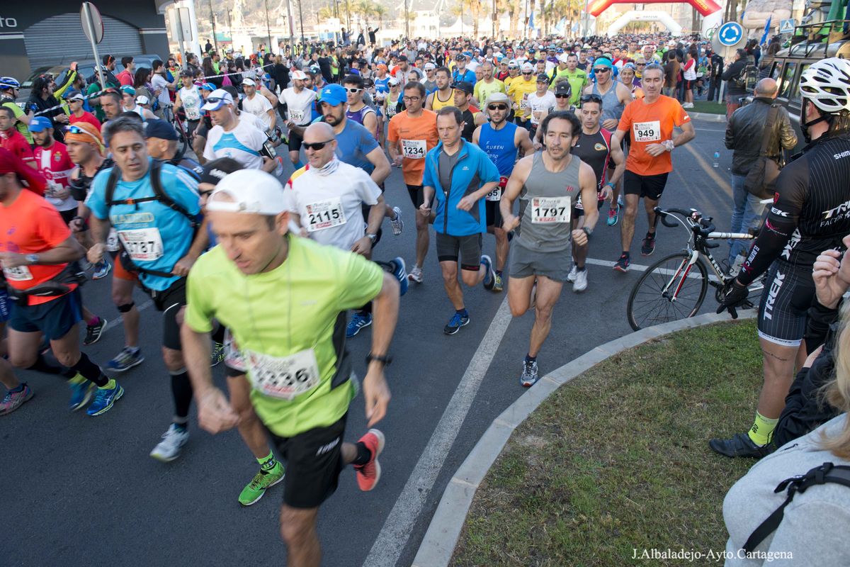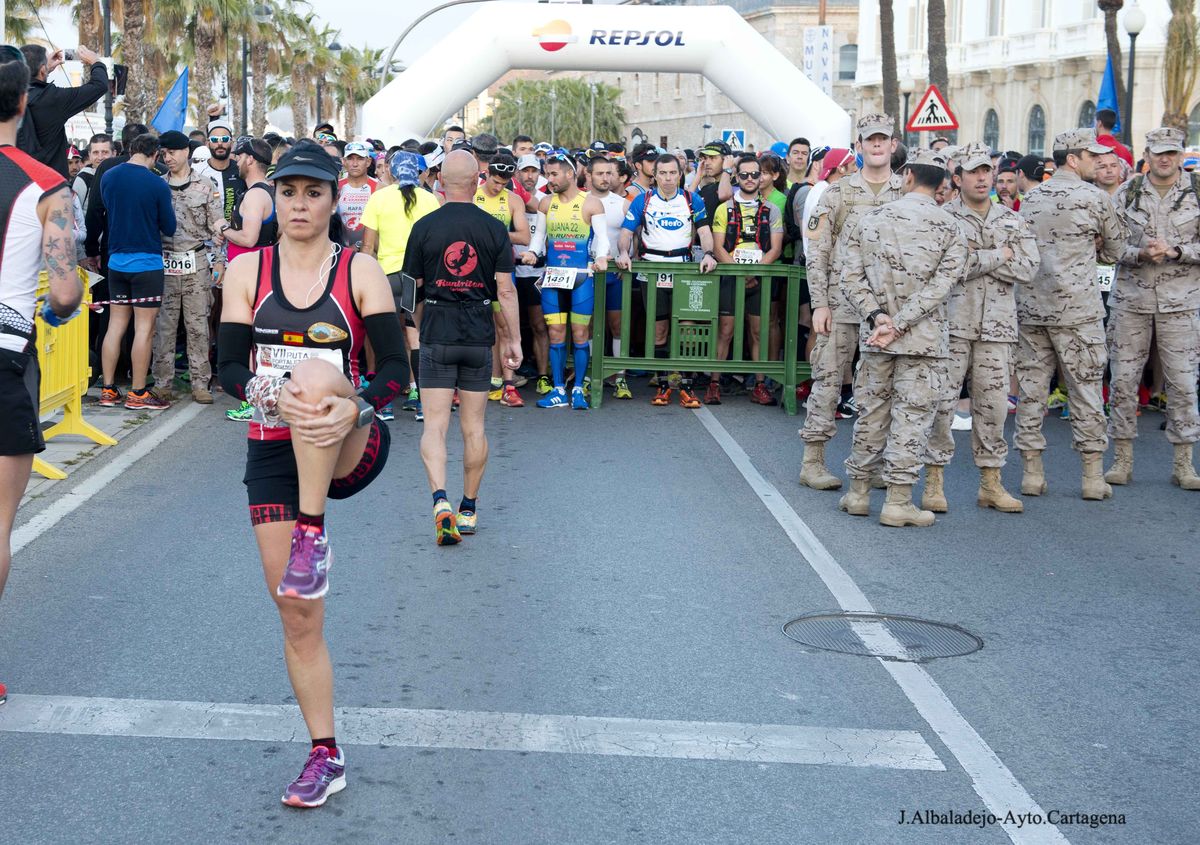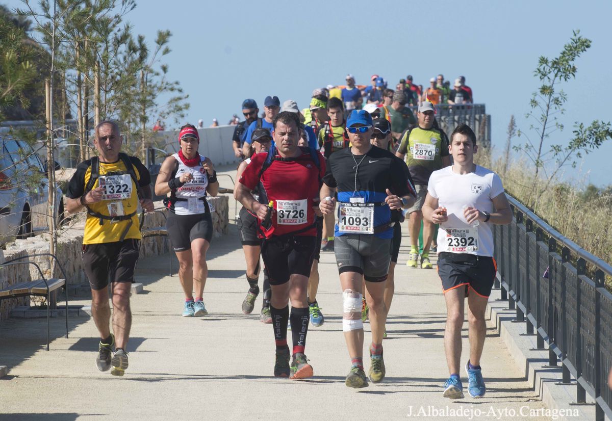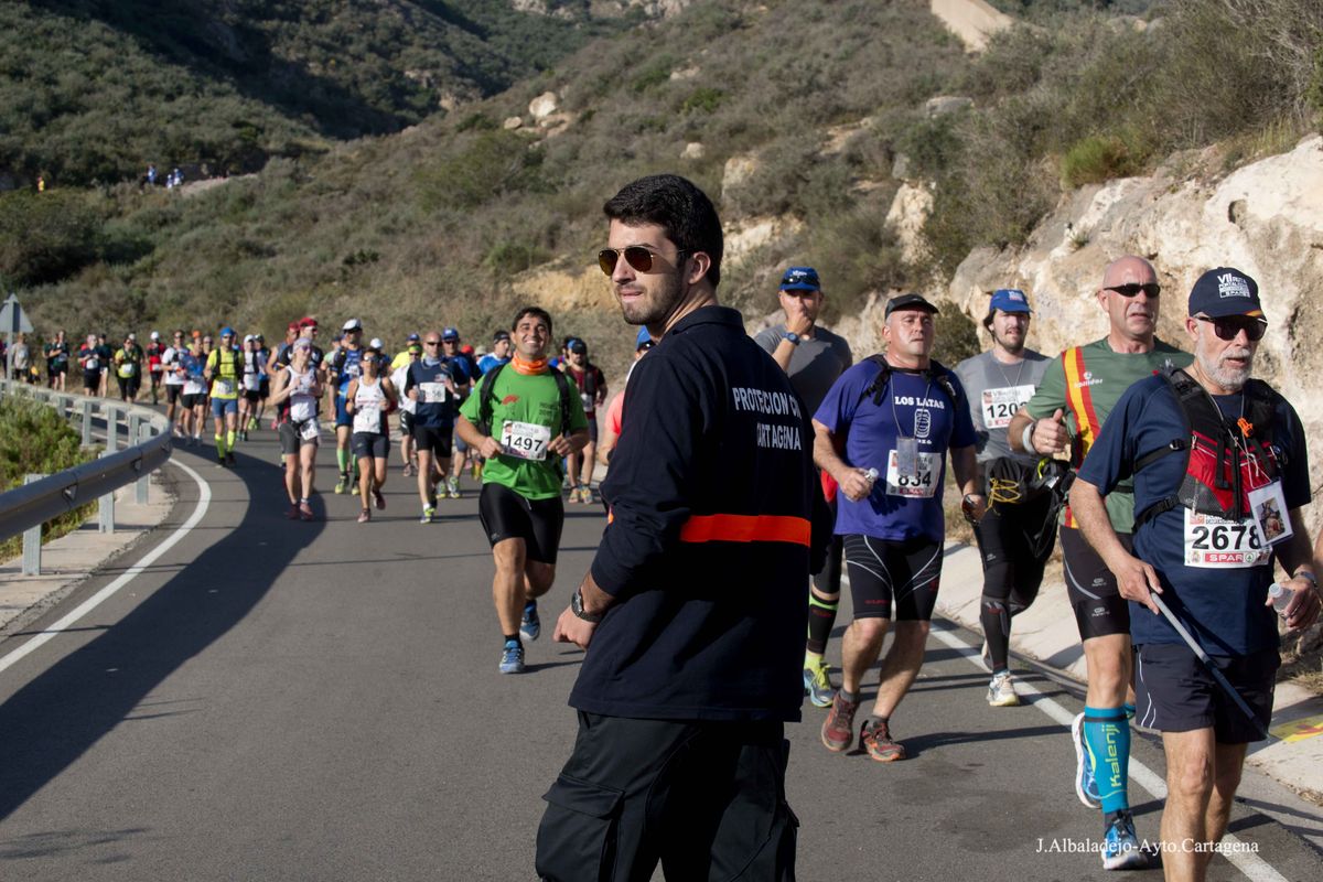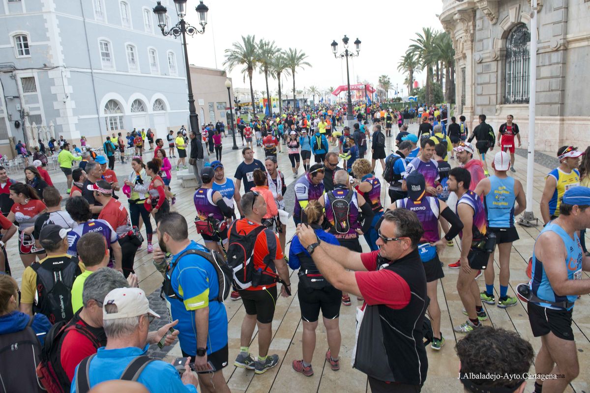 La prueba se inició a las ocho de la mañana en el puerto de la ciudad, tras el solemne izado de bandera. Los casi cuatro mil participantes de muy variada condición física, ya que había corredores de ultratrial, fondistas, marchadores o simples senderistas, se dirigieron hacia el Castillo de Los Moros, y de allí al Calvario, San Julián, Trincabotijas, cala Cortina, San Leandro, Fuerte de Despeñaperros, Castillo de la Concepción, Molinete, Fuerte de Navidad, la Podadera, Fajardo, Galeras, la Atalaya y Roldán, para terminar en la Escuela de Infantería de Marina, con un desnivel acumulado de unos 1.600 metros y bellísimas vistas sobre el campo, la ciudad y la bahía de Cartagena.