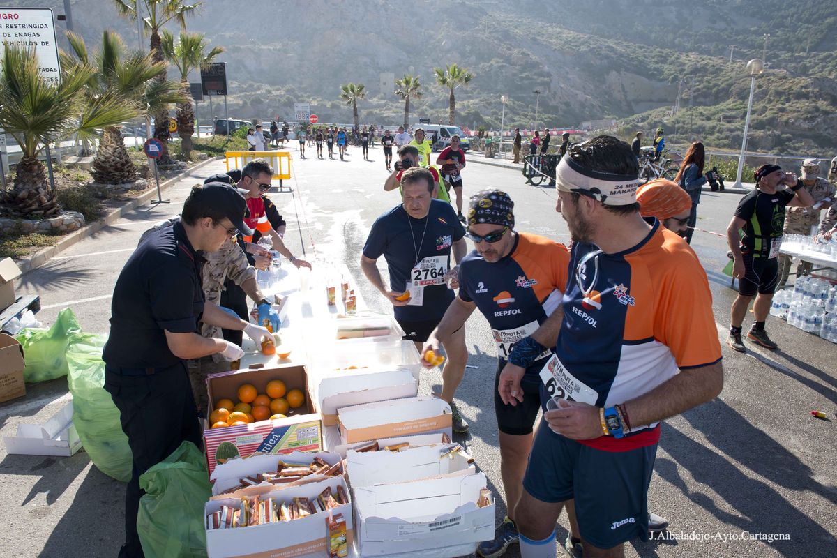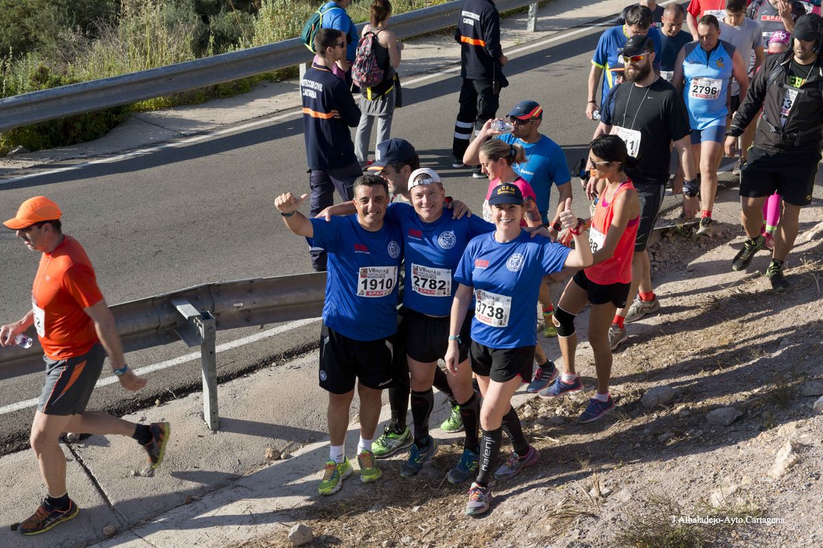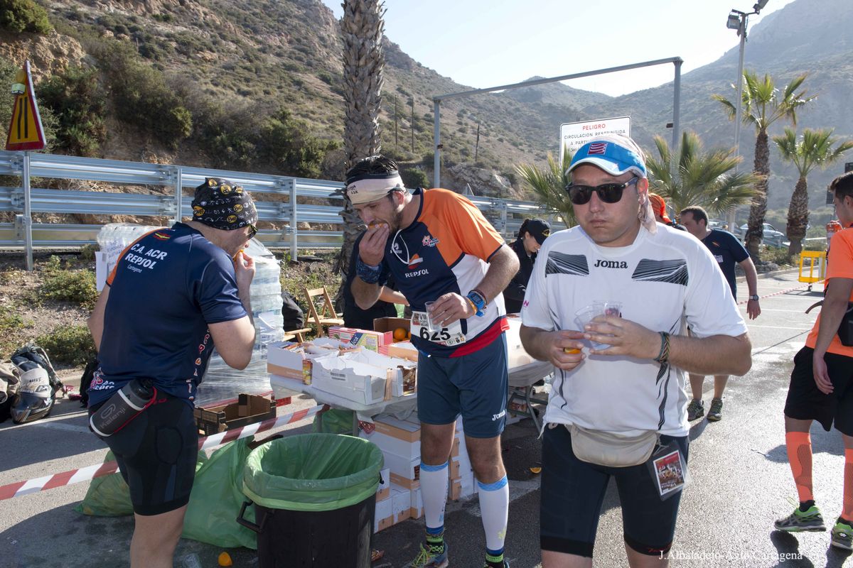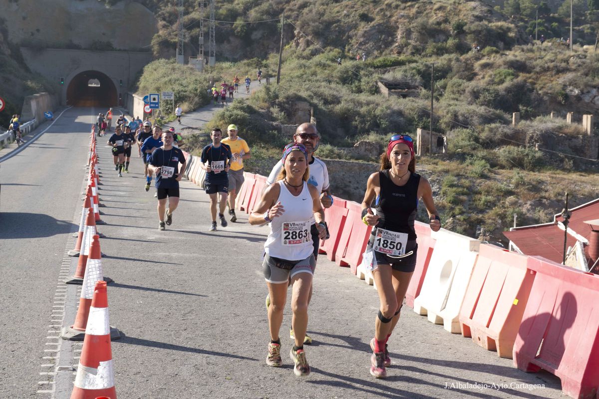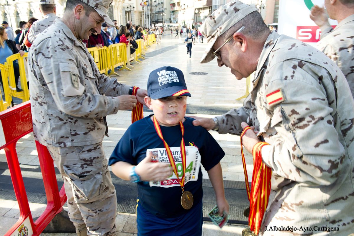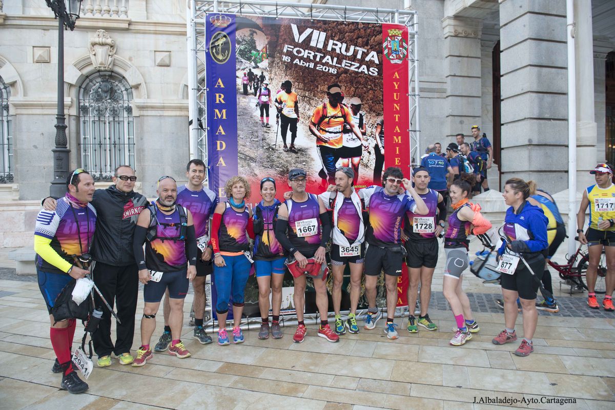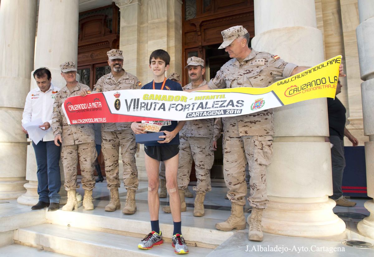 El calor, con temperaturas que rondaron los 30 grados, fue el protagonista de la VII Ruta de las Fortalezas que organizó el Ayuntamiento de Cartagena y la Armada Española, a través de la Escuela de Infantería de Marina General Albacete y Fuster. La dureza de esta prueba de 51 kilómetros por antiguas fortificaciones y baterías de costa de los montes que circundan la ciudad se vio incrementada por un sol radiante, pero no fue óbice para que los primeros corredores hicieran su aparición antes de las doce del mediodía, completando el recorrido en menos de cuatro horas y batiendo una nueva marca para esta prueba que año tras año se consolida a nivel nacional.