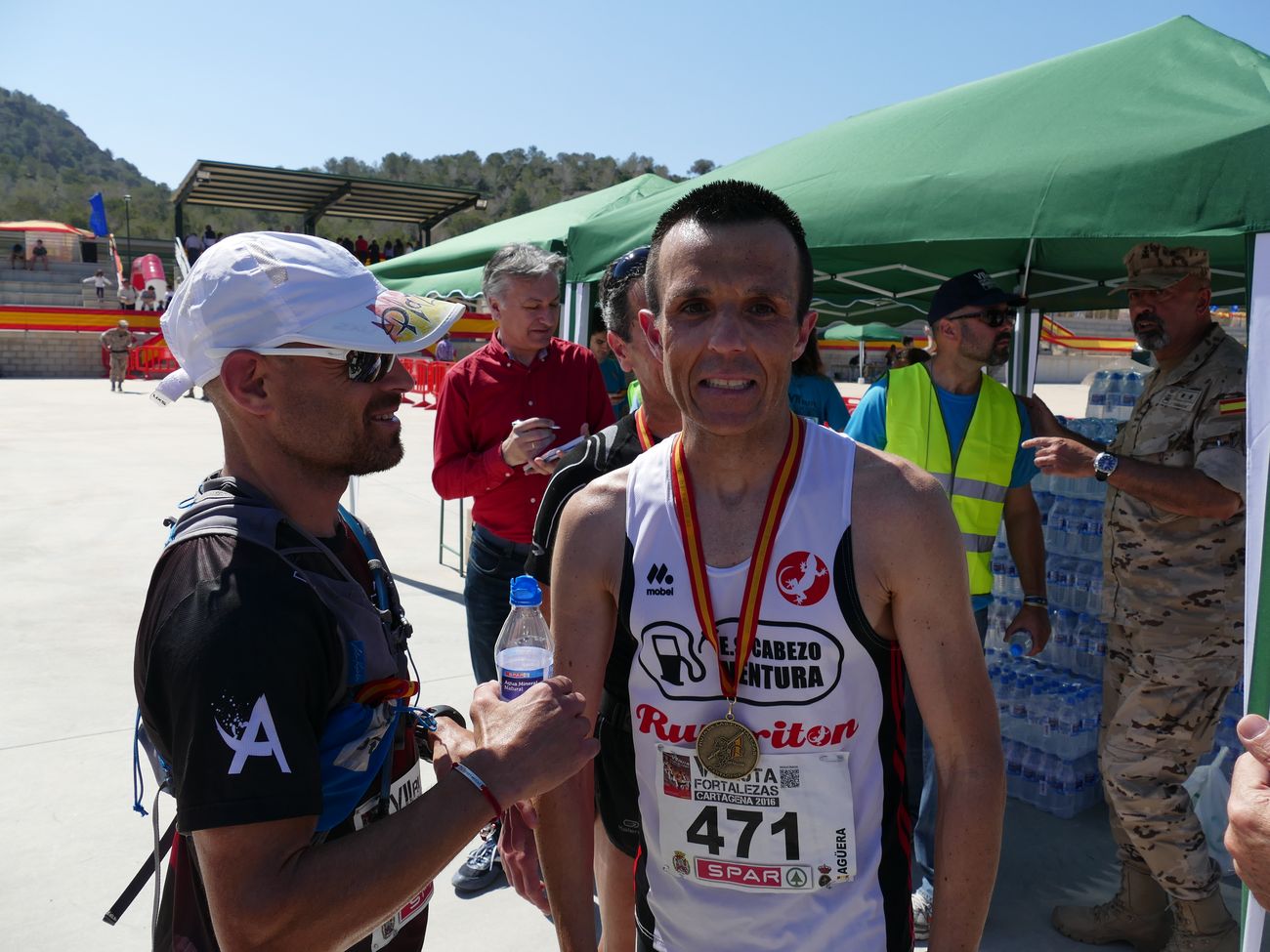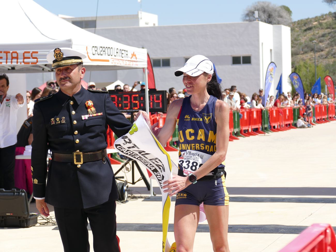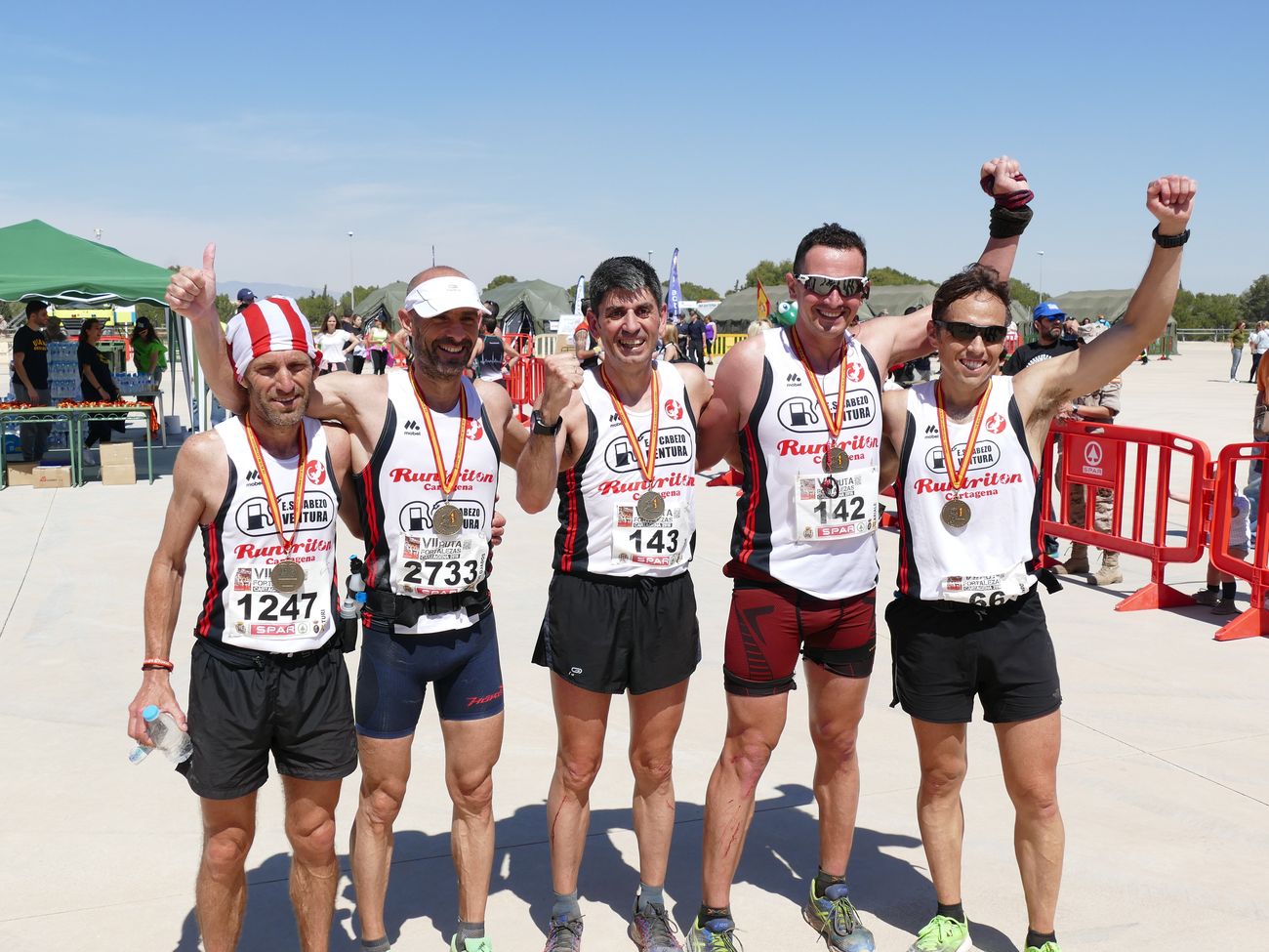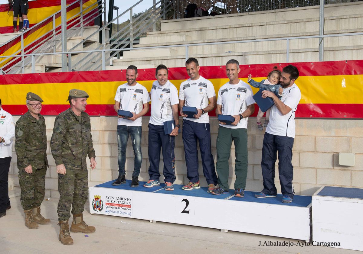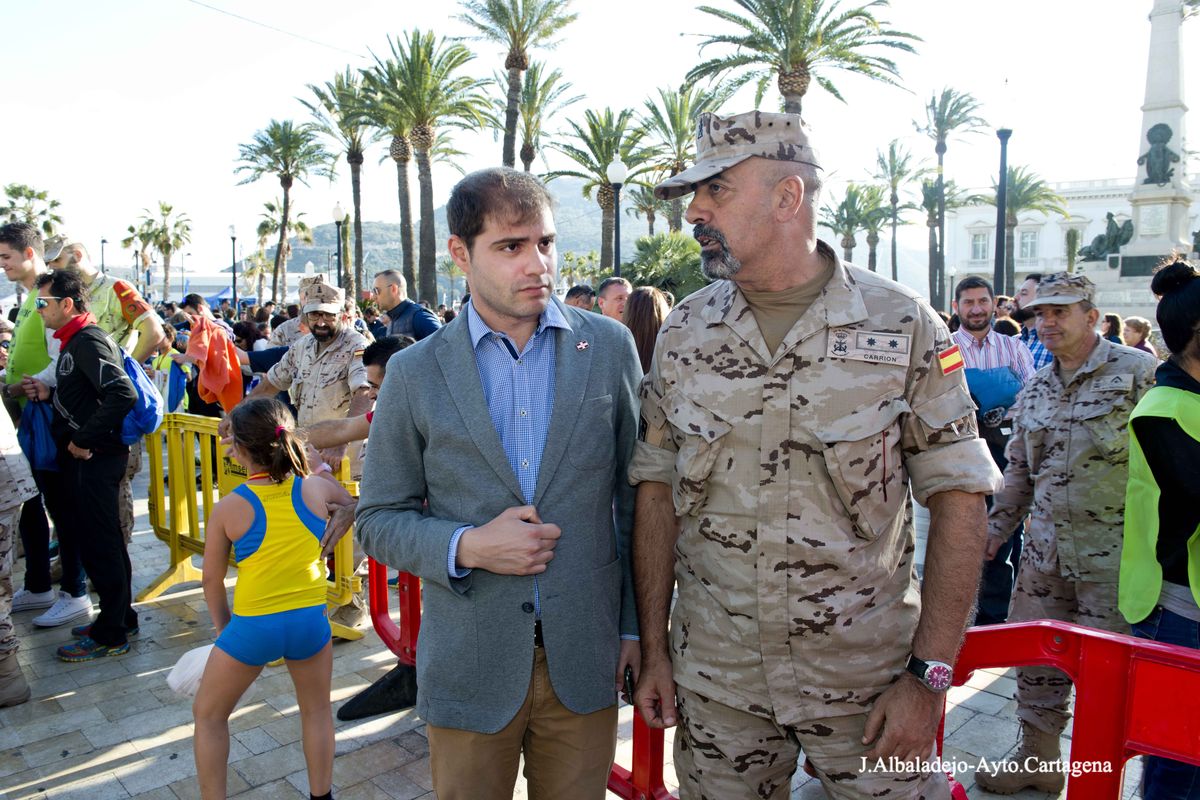 El calor, con temperaturas que rondaron los 30 grados, fue el protagonista de la VII Ruta de las Fortalezas que organizó el Ayuntamiento de Cartagena y la Armada Española, a través de la Escuela de Infantería de Marina General Albacete y Fuster. La dureza de esta prueba de 51 kilómetros por antiguas fortificaciones y baterías de costa de los montes que circundan la ciudad se vio incrementada por un sol radiante, pero no fue óbice para que los primeros corredores hicieran su aparición antes de las doce del mediodía, completando el recorrido en menos de cuatro horas y batiendo una nueva marca para esta prueba que año tras año se consolida a nivel nacional.