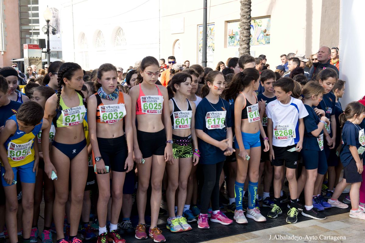 Los infantiles fueron los primeros en lanzarse a conquistar la Ruta en su categoría de 2.700 metros que tuvo lugar la tarde del viernes 15. Un total de 266 pequeños cruzaron la meta, y el primero, Carlos Barbosa, lo hizo en un tiempo de 10 minutos 50 segundos, mientras que en la categoría femenina la primera fue Blanca Conesa a los 11 minutos 54 segundos.