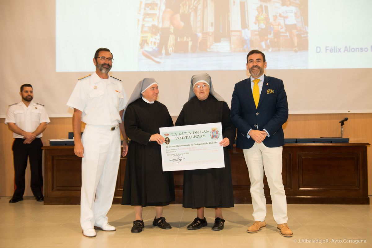 Un total de 34 entidades y asociaciones benéficas han recibido hoy,los beneficios económicos generados por las inscripciones de la VII edición de la Ruta de las Fortalezas. Este dinero, en total 52.500 euros, irá destinado a fines sociales y a un proyecto de desarrollo ambiental del entorno de Cartagena.