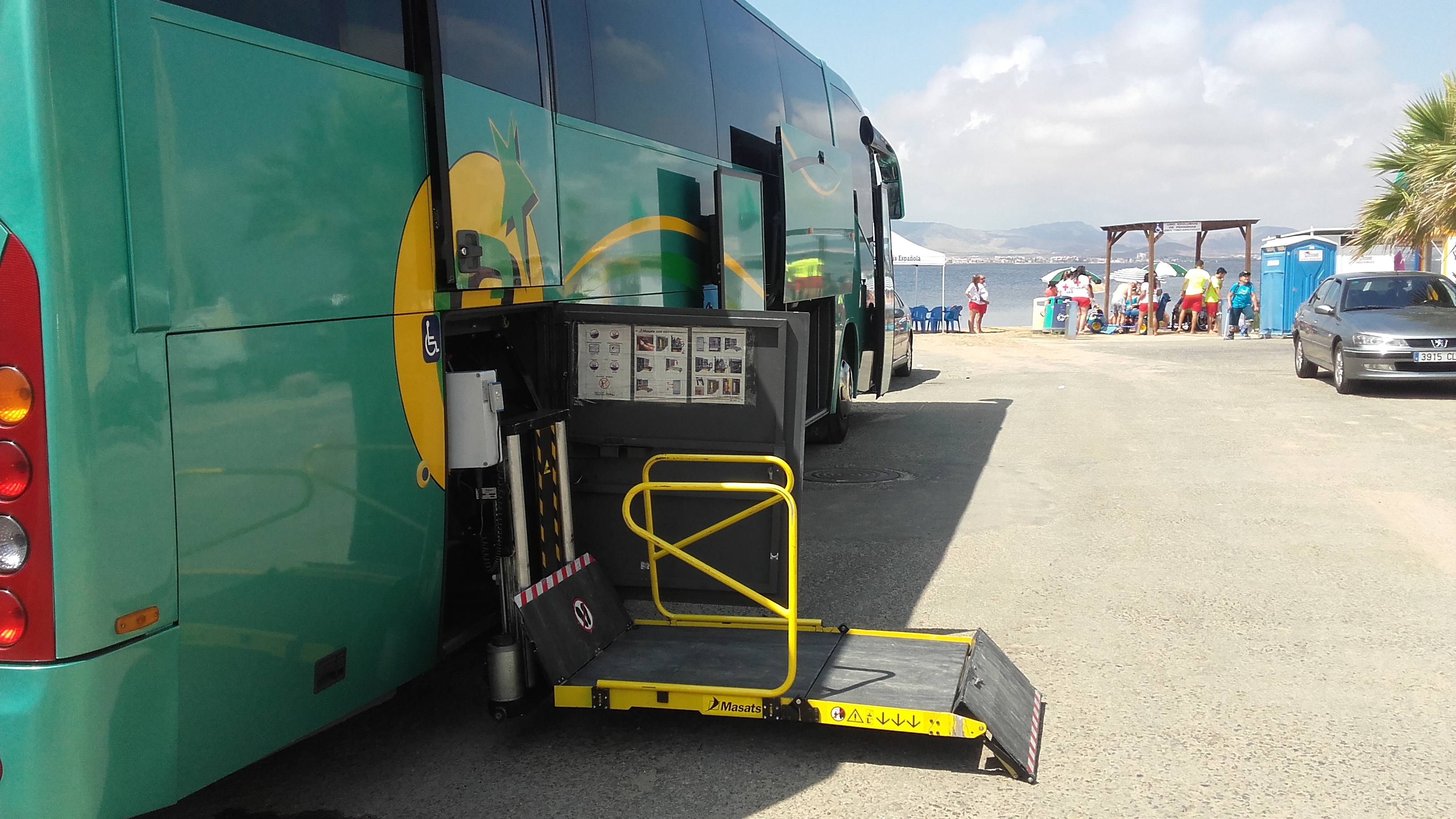 En este espacio se ha habilitado espacio suficiente para que los autobuses puedan aparcar, así como plazas de aparcamiento para vehículos particulares de discapacitados, zonas de baño adaptadas, zonas de sombra, lavapiés y baños accesibles.