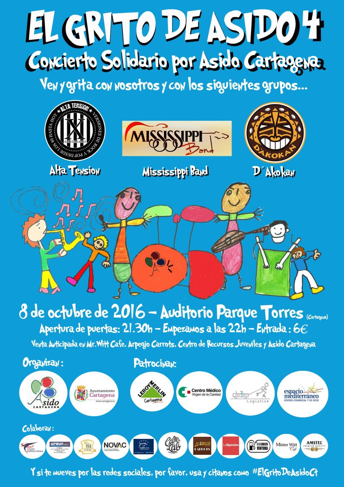 Cartagena se unirá en una sola voz para gritar al unísono por la integración de las personas con Síndrome de Down y discapacidad intelectual. El Festival El Grito de Asido se celebrará el próximo sábado, 8 de octubre, en el Parque Torres con el objetivo de recaudar fondos para seguir trabajando por la integración de este colectivo. El concierto está organizado por la asociación Asido y por el Ayuntamiento de Cartagena y cumplirá este año su cuarta edición.
