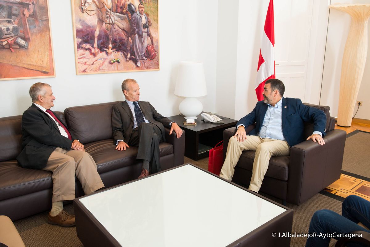 En la reunión que han mantenido hoy miércoles el alcalde y el embajador, se han tratado diversos temas, desde la situación política y social de Cartagena a su economía, su universidad o la protección del patrimonio