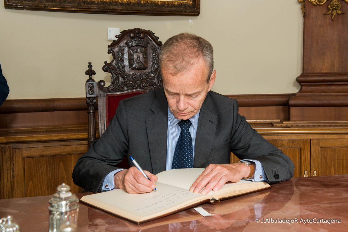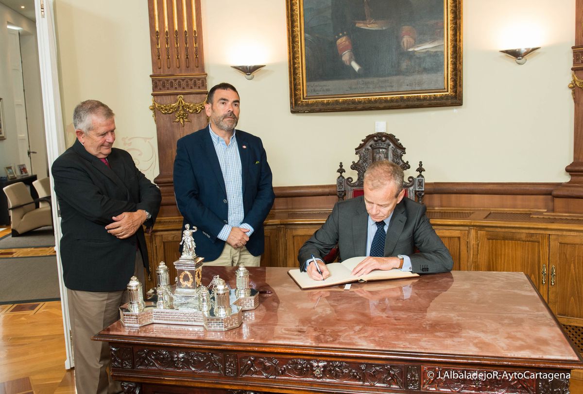 El alcalde de Cartagena, José López, ha recibido hoy miércoles la visita del embajador de Bélgica en España, Pierre Labouverie, que ha querido acercarse a la ciudad dentro del recorrido que está realizando estos días para conocer la Región de Murcia.
