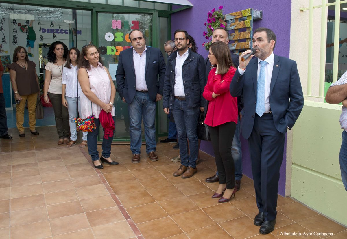 El alcalde de Cartagena, José López; la vicealcaldesa, Ana Belén Castejón; el concejal de Descentralización, Juan Pedro Torralba; y el concejal de Educación, David Martínez; junto a otros ediles de la corporación, como el portavoz del grupo municipal Ciudadanos, Manuel Padín, visitaron ayer miércoles la Escuela Infantil Municipal de Pozo Estrecho, con motivo de la inauguración del curso.