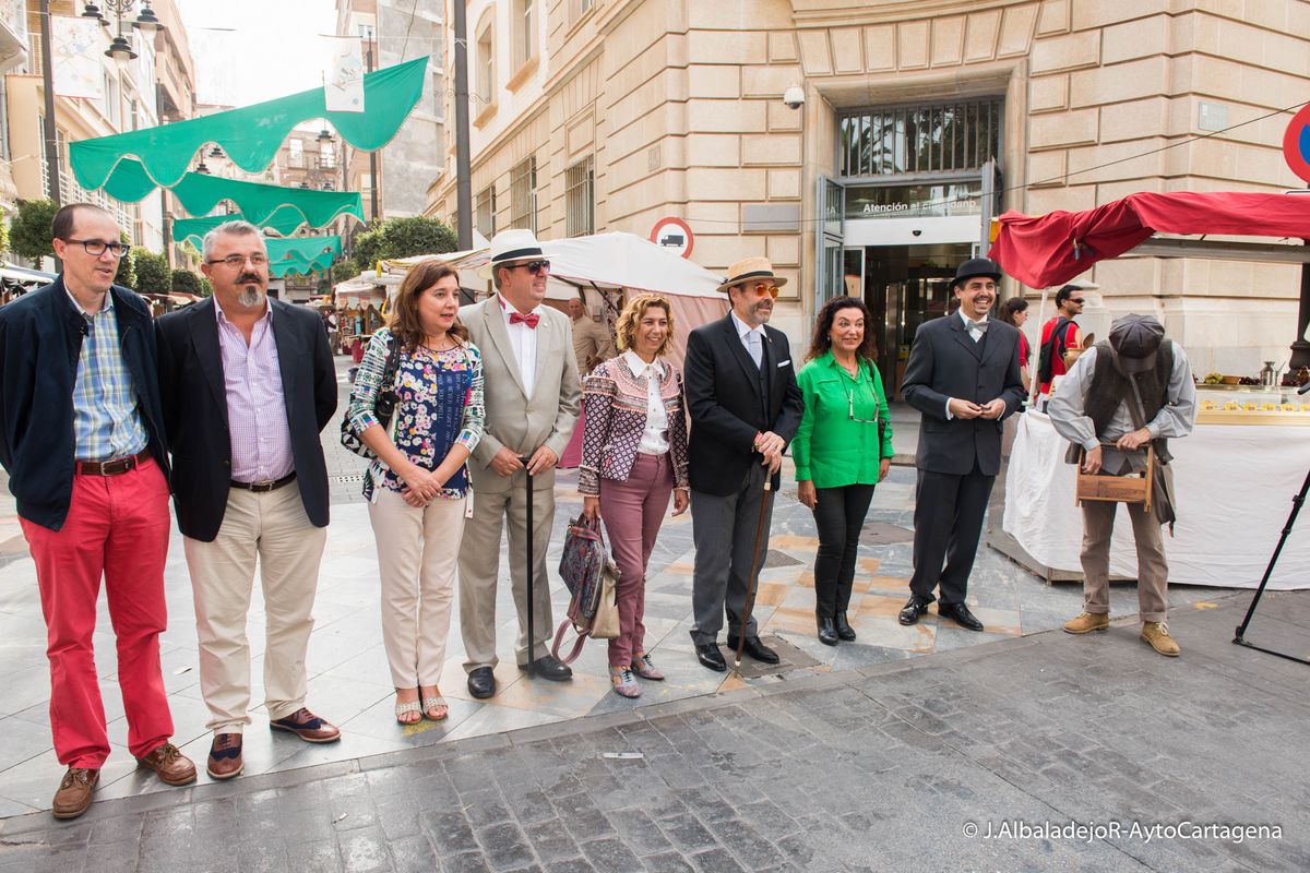 A la inauguración del Mercado Modernista, organizado por el Ayuntamiento de Cartagena, el Área de Cultura y Patrimonio y la Concejalía de Servicios Sociales, ha asistido el alcalde de Cartagena, José López, y los ediles Francisco Calderón, Carmen Martín, Obdulia Gómez y María José Soler.