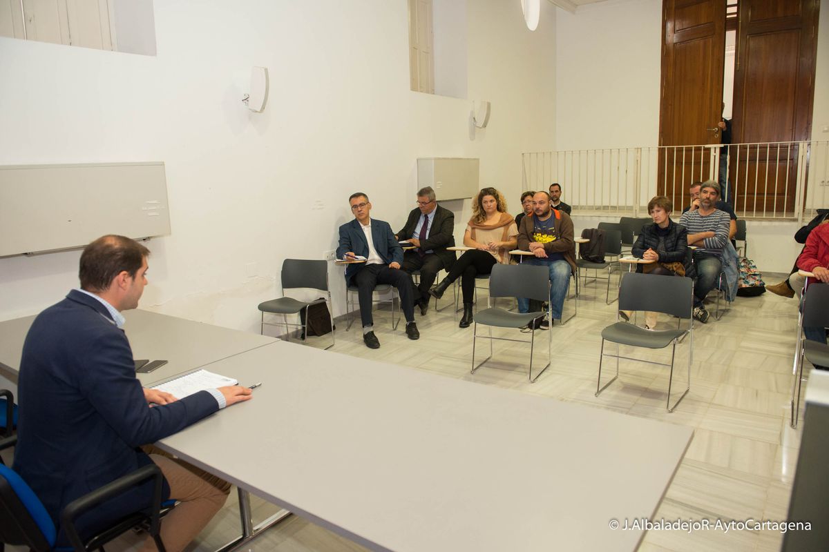 El concejal del Área de Cultura y Patrimonio Arqueológico, Ricardo Segado, junto a la coordinadora municipal de Patrimonio Histórico y Arqueológico, María del Carmen Berrocal, se ha reunido hoy, lunes 21 de noviembre, con los colectivos más representativos en materia de patrimonio material e inmaterial de la ciudad de Cartagena.