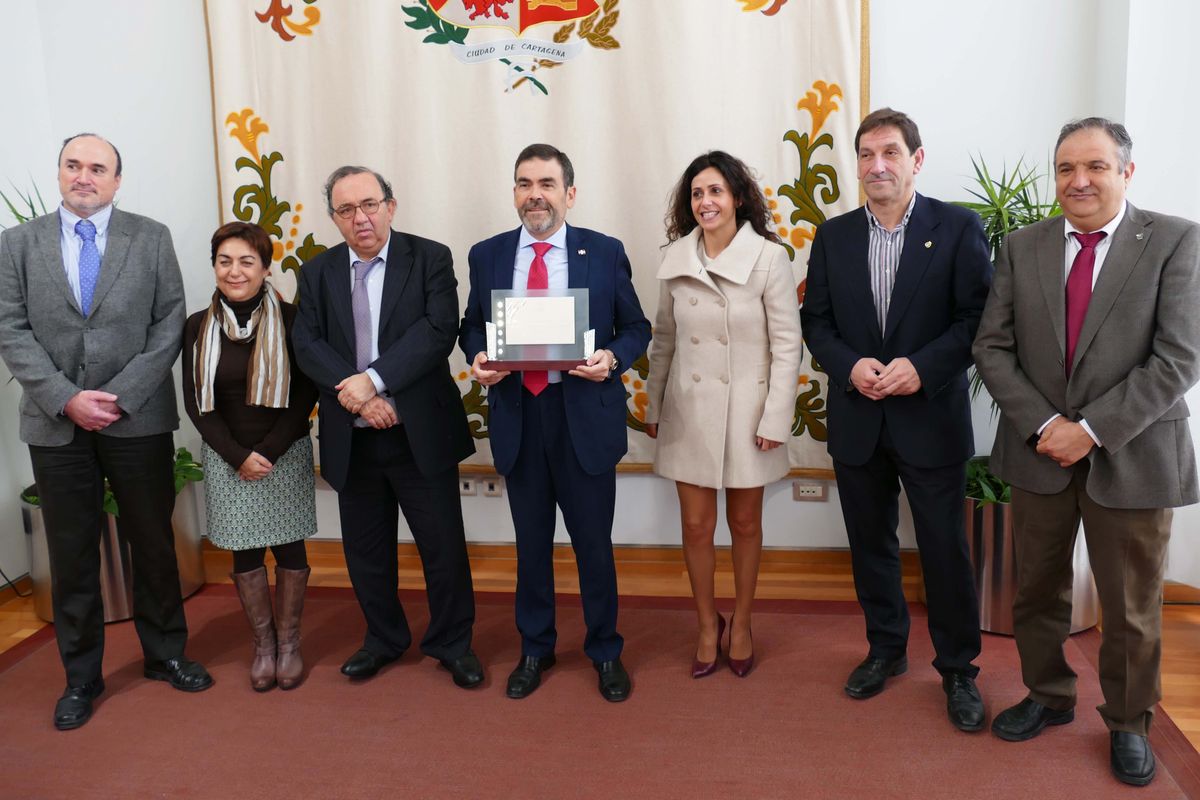 El alcalde de Cartagena, José López, ha recibido este reconocimiento de manos del Rector de la Universidad de Murcia, José Orihuela
