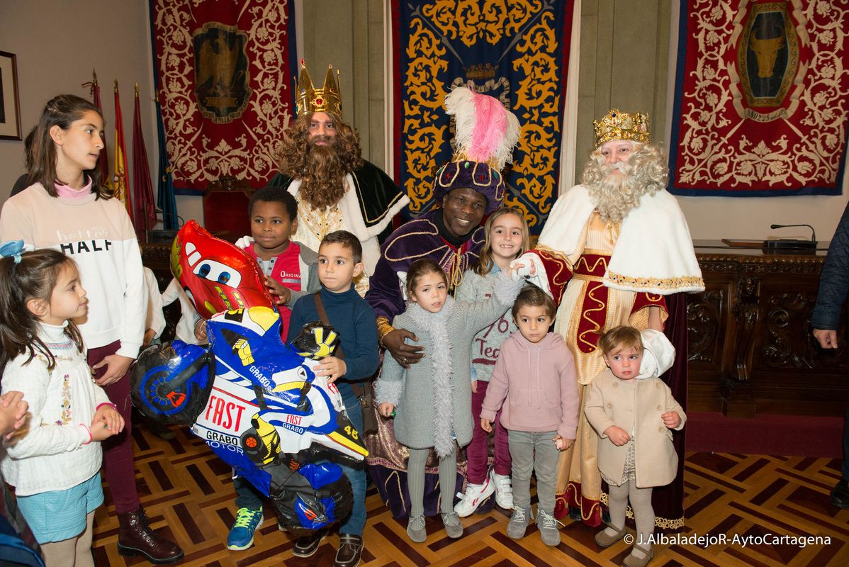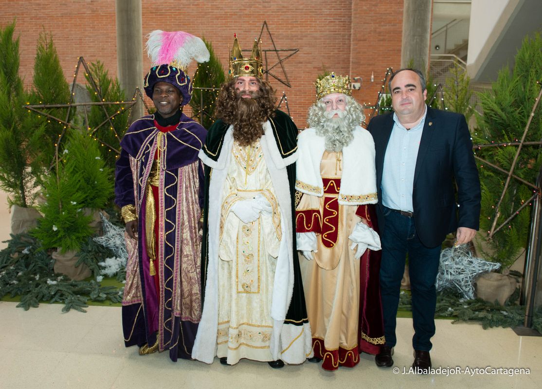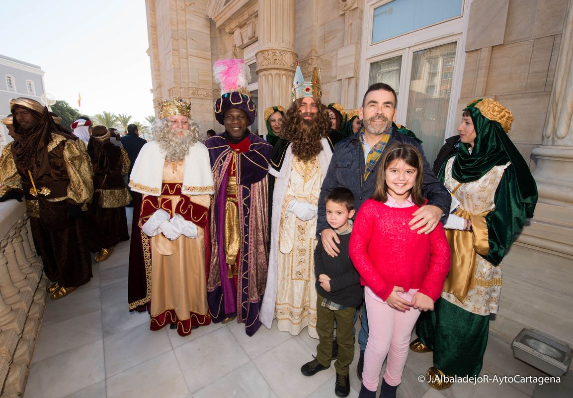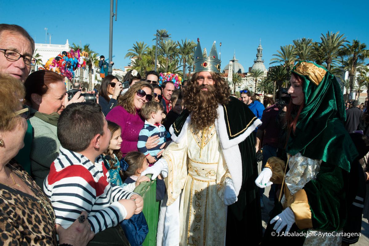 los tres Reyes Magos fueron recibidos por el alcalde de la ciudad portuaria, José López, y por la vicealcaldesa, Ana Belén Castejón, antes de