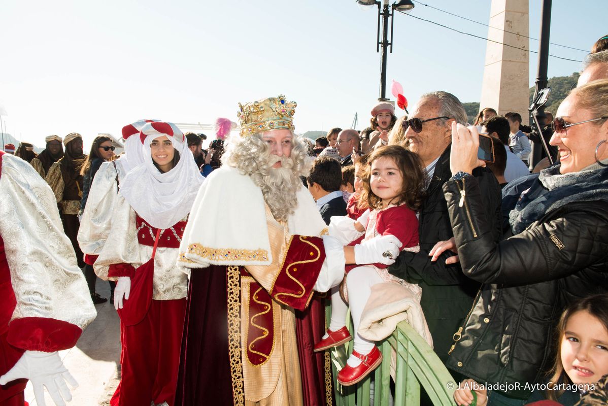 Melchor, Gaspar y Baltasar acudieron a la ciudad portuaria para que los niños y niñas del municipio pudieran recibirles y entregarles sus cartas de deseos para que sepan qué regalos traer en la noche más mágica del año. Rayando el mediodía atracaba el barco que transportaba a la comitiva Real y se desataba la alegría de los más pequeños, que esperaban con ansia su llegada.
