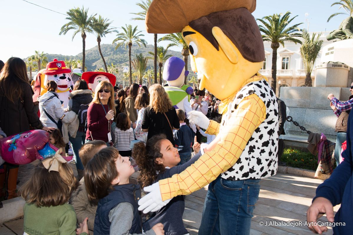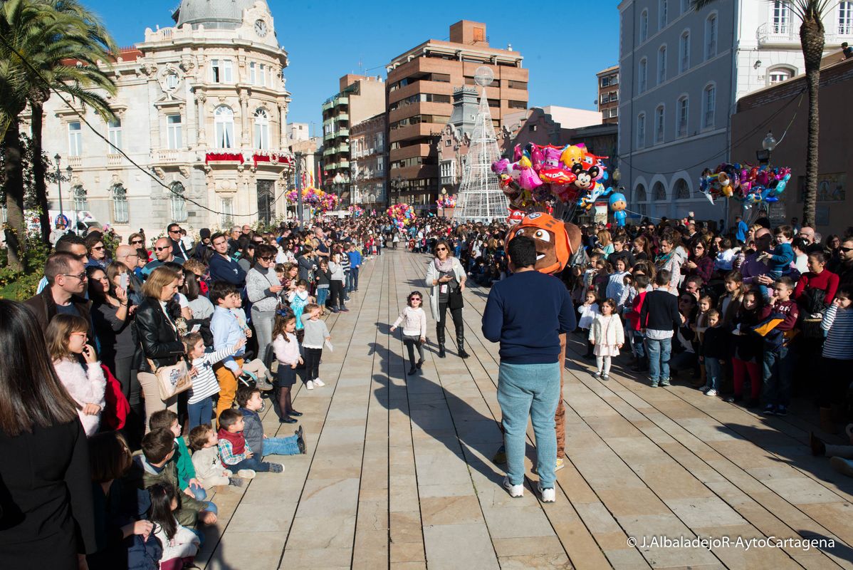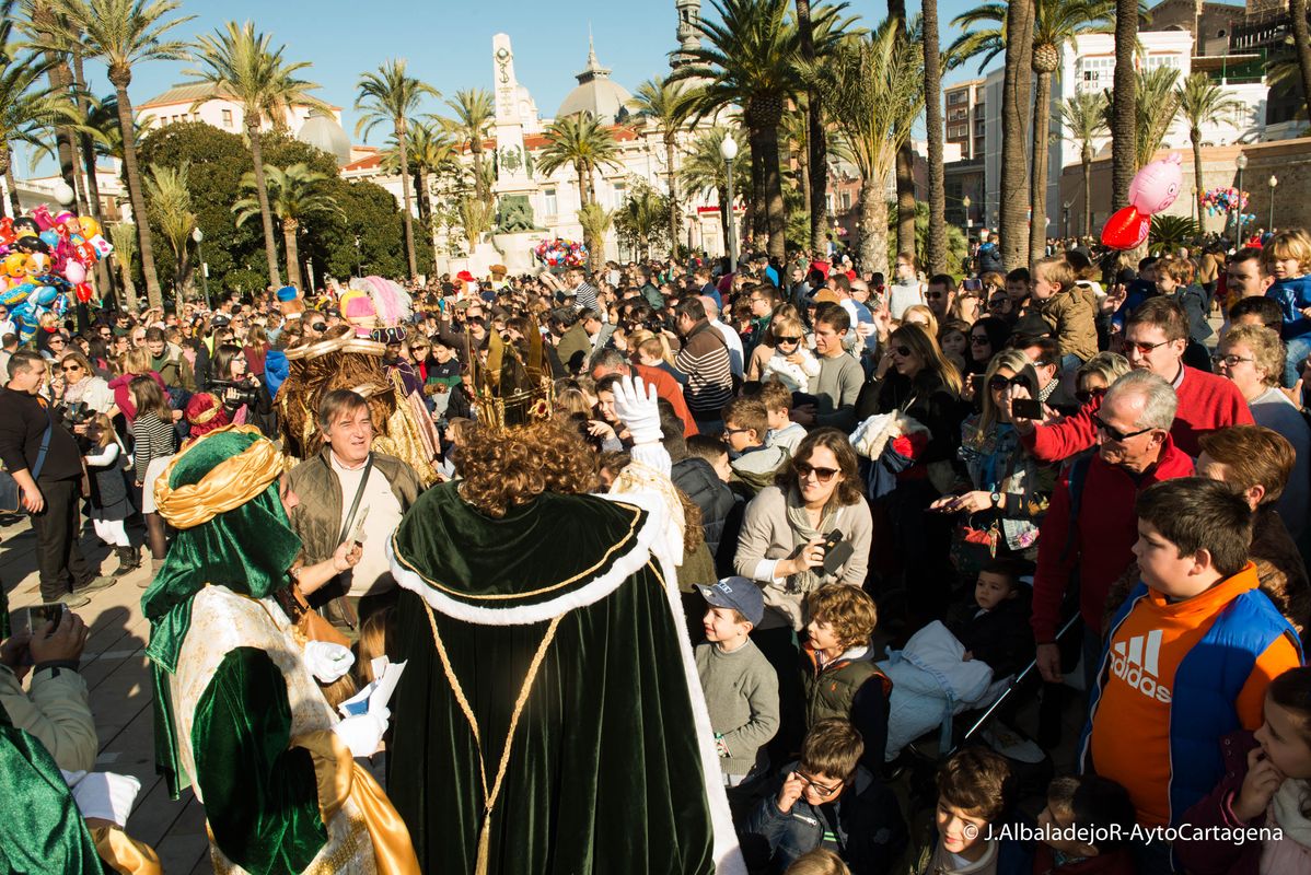 hasta llegar a la Plaza del Ayuntamiento, donde terminará el acto con el fin de que los tres Magos puedan preparar el reparto de regalos en las casas y de que las niñas y niños cartageneros se vayan a dormir temprano para facilitarles el trabajo.