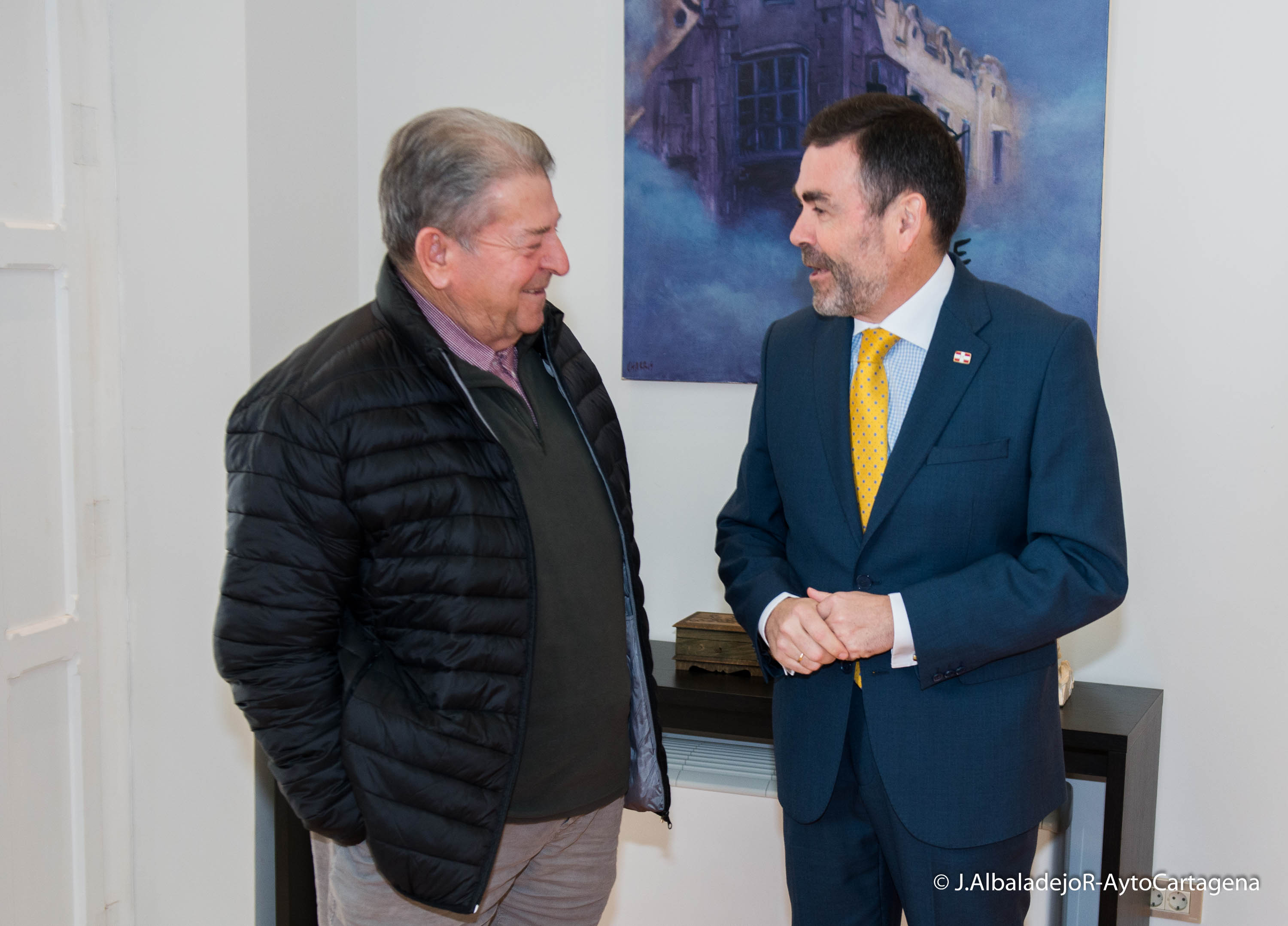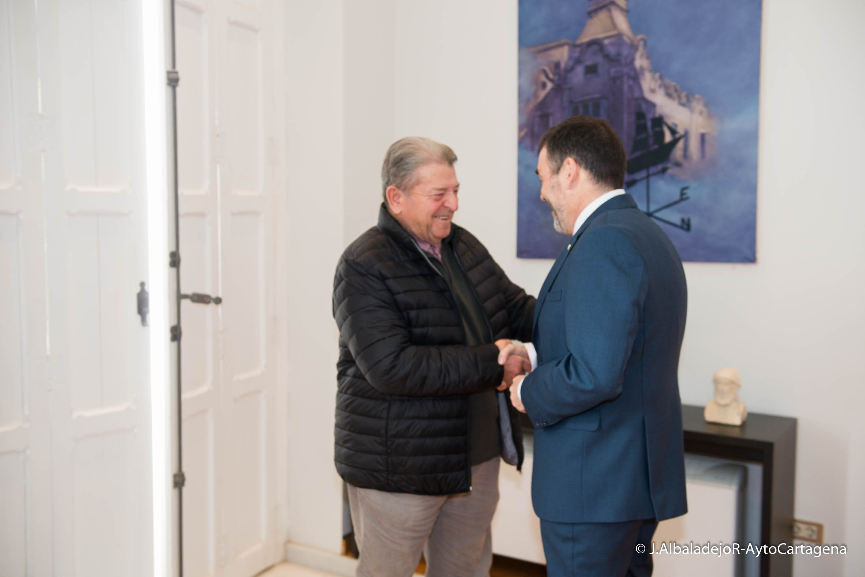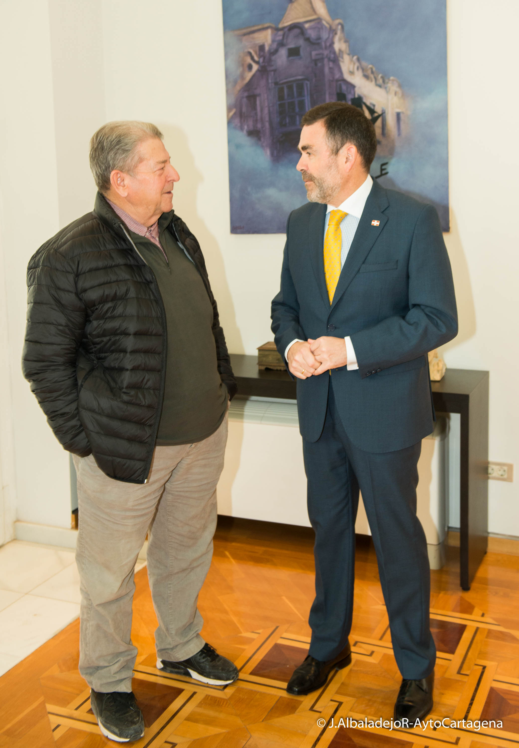 El alcalde de Cartagena, José López, ha mantenido este miércoles, 25 de enero, un encuentro con el presidente del Consejo Regulador de la Denominación de Origen de Jumilla, Pedro Lencina, tras el que ha anunciado la celebración de una feria de vinos en la que se promocionará el producto jumillano en Cartagena durante la próxima primavera en la zona del Puerto.